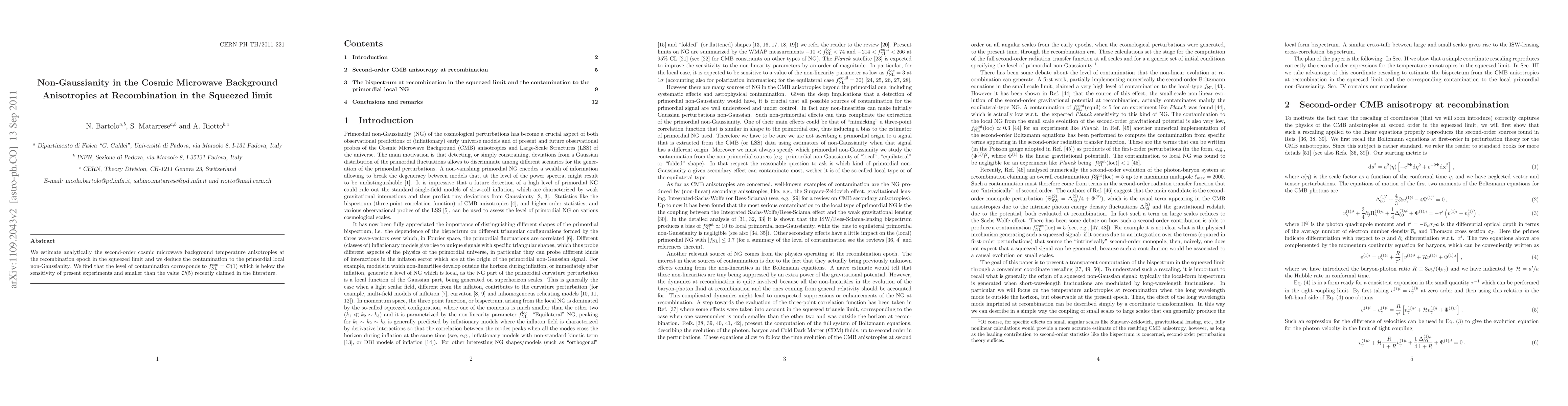 This paper analytically estimates second-order CMB temperature anisotropies at recombination in the squeezed limit, finding a contamination level of primordial local non-Gaussianity (f_NL^{con}=O(1)), which is below current experimental sensitivity and less than previously claimed values.
