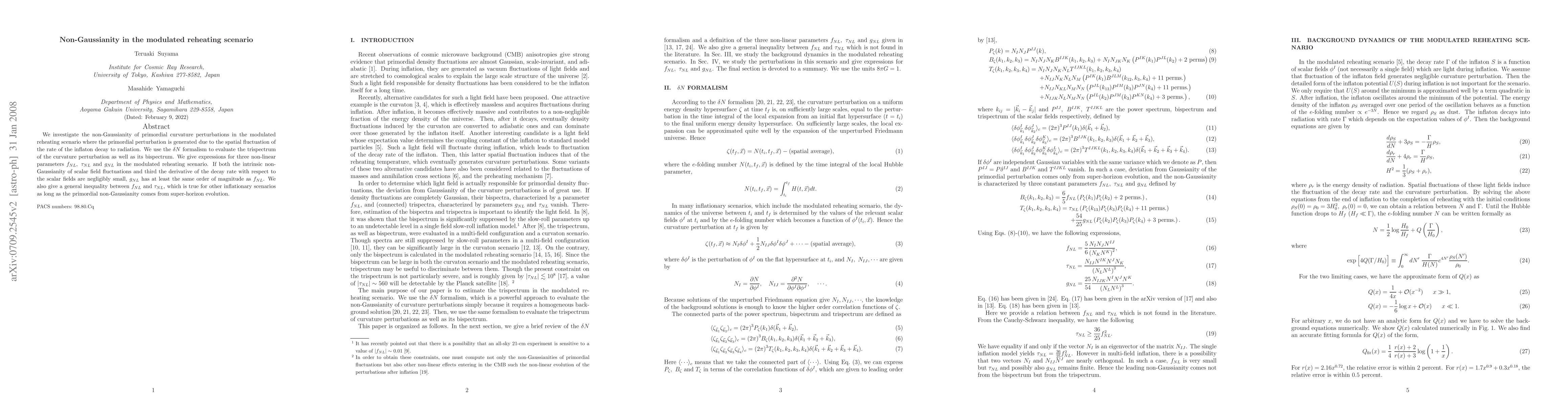 This paper examines the non-Gaussianity of primordial curvature perturbations in the modulated reheating scenario, using the $\delta N$ formalism to analyze the trispectrum and bispectrum. The study derives expressions for non-linear parameters $f_{NL}$, $\tau_{NL}$, and $g_{NL}$, finding that $g_{NL}$ is comparable to $f_{NL}$ under certain conditions.