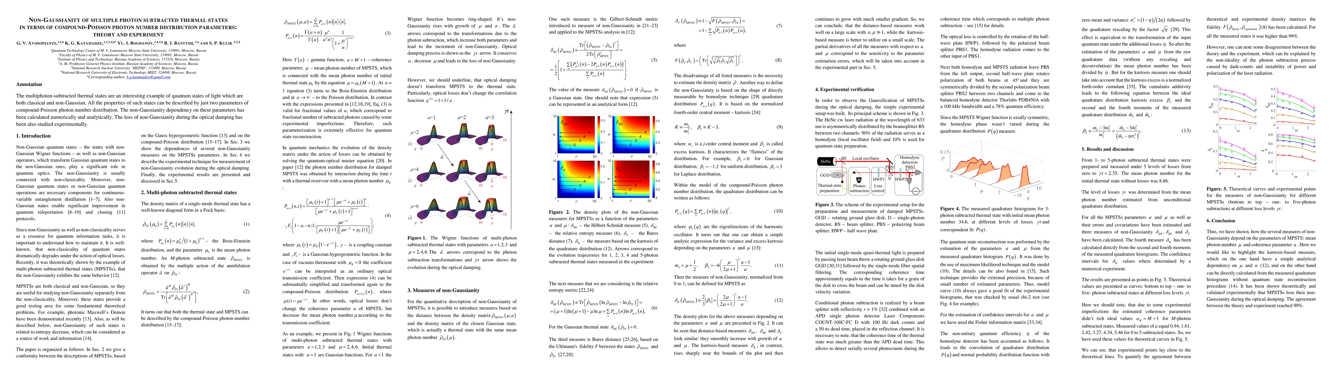 Summary: This paper investigates the non-Gaussian properties of multiphoton-subtracted thermal states, described by compound-Poisson photon number distribution parameters, and explores both numerical and experimental aspects of their non-Gaussianity, including its loss due to optical damping.