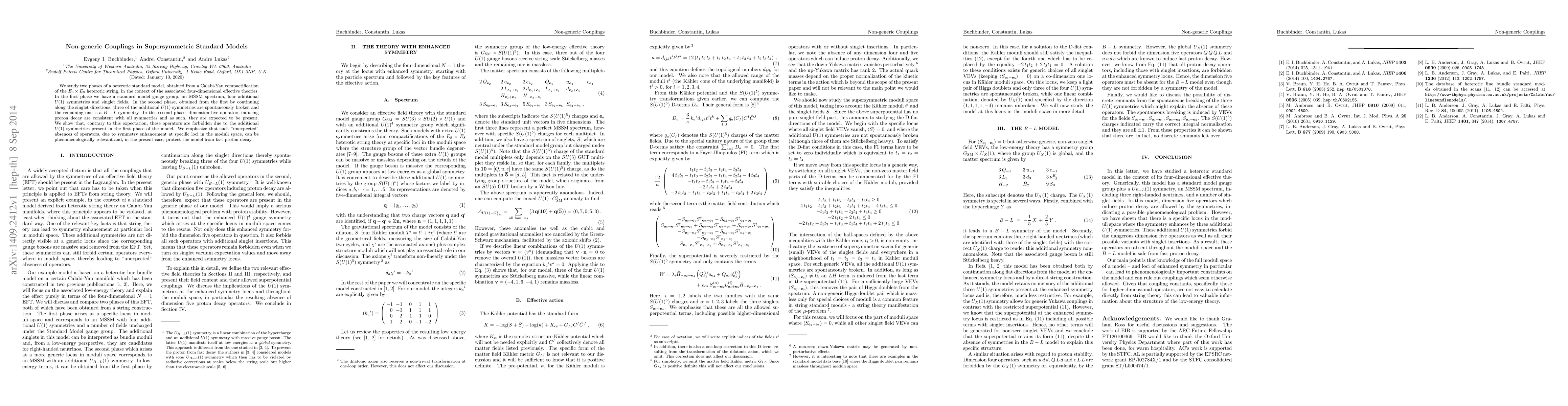We study two phases of a heterotic standard model, obtained from a Calabi-Yau compactification of the E8xE8 heterotic string, in the context of the associated four-dimensional effective theories. In the first phase we have a standard model gauge group, an MSSM spectrum, four additional U(1) symmetries and singlet fields. In the second phase, obtained from the first by continuing along the singlet directions, three of the additional U(1) symmetries are spontaneously broken and the remaining one is a B-L symmetry. In this second phase, dimension five operators inducing proton decay are consistent with all symmetries and as such, they are expected to be present. We show that, contrary to this expectation, these operators are forbidden due to the additional U(1) symmetries present in the first phase of the model. We emphasize that such 'unexpected' absences of operators, due to symmetry enhancement at specific loci in the moduli space, can be phenomenologically relevant and, in the present case, protect the model from fast proton decay.
