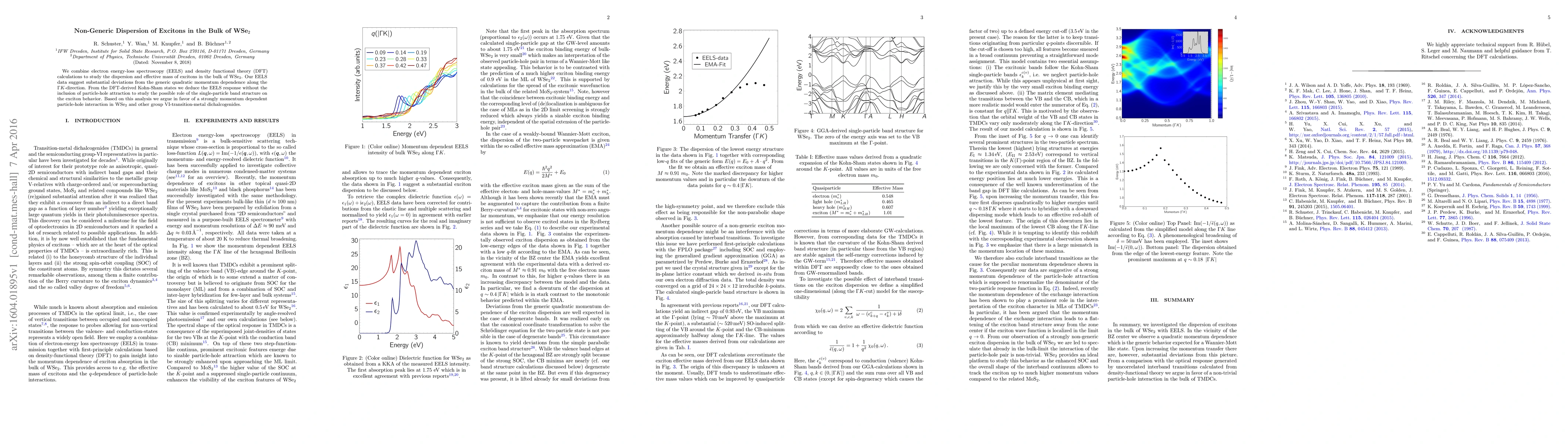 We combine electron energy-loss spectroscopy (EELS) and density functional theory (DFT) calculations to study the dispersion and effective mass of excitons in the bulk of WSe$_2$. Our EELS data suggest substantial deviations from the generic quadratic momentum dependence along the $\Gamma K$-direction. From the DFT-derived Kohn-Sham states we deduce the EELS response without the inclusion of particle-hole attraction to study the possible role of the single-particle band structure on the exciton behavior. Based on this analysis we argue in favor of a strongly momentum dependent particle-hole interaction in WSe$_2$ and other group VI-transition-metal dichalcogenides.