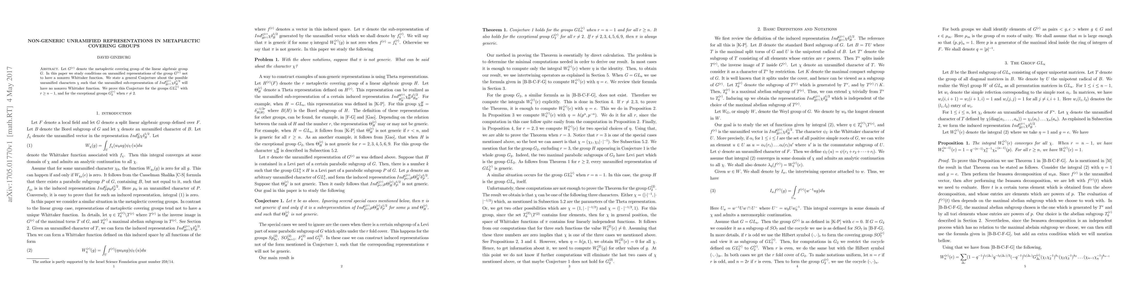 This paper investigates unramified representations of metaplectic covering groups $G^{(r)}$, focusing on conditions that prevent nonzero Whittaker functions. A conjecture is proposed and proven for $GL_n^{(r)}$ with $r \geq n-1$ and for exceptional group $G_2^{(r)}$ when $r \neq 2$.