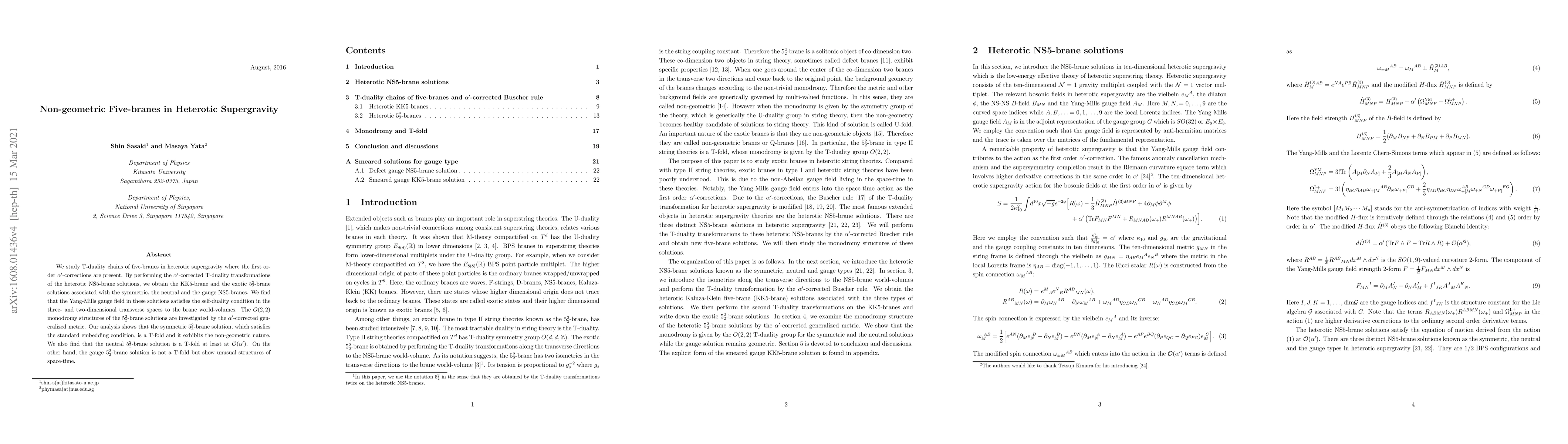 This paper explores $\alpha'$-corrected T-duality transformations in heterotic supergravity, revealing exotic brane solutions such as KK5-branes and $5^2_2$-branes. The analysis identifies self-duality conditions for Yang-Mills gauge fields and demonstrates that certain $5^2_2$-brane solutions exhibit non-geometric T-fold characteristics.