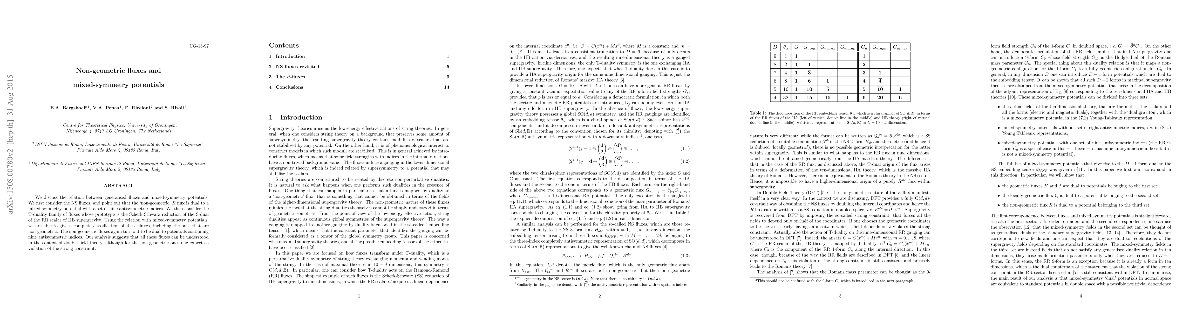 This paper explores the connection between generalised fluxes and mixed-symmetry potentials, showing that non-geometric $R$ fluxes are dual to mixed-symmetry potentials with nine antisymmetric indices. It classifies T-duality fluxes, revealing that non-geometric ones also correspond to such potentials, suggesting their interpretation within double field theory despite potential violations of the strong constraint.