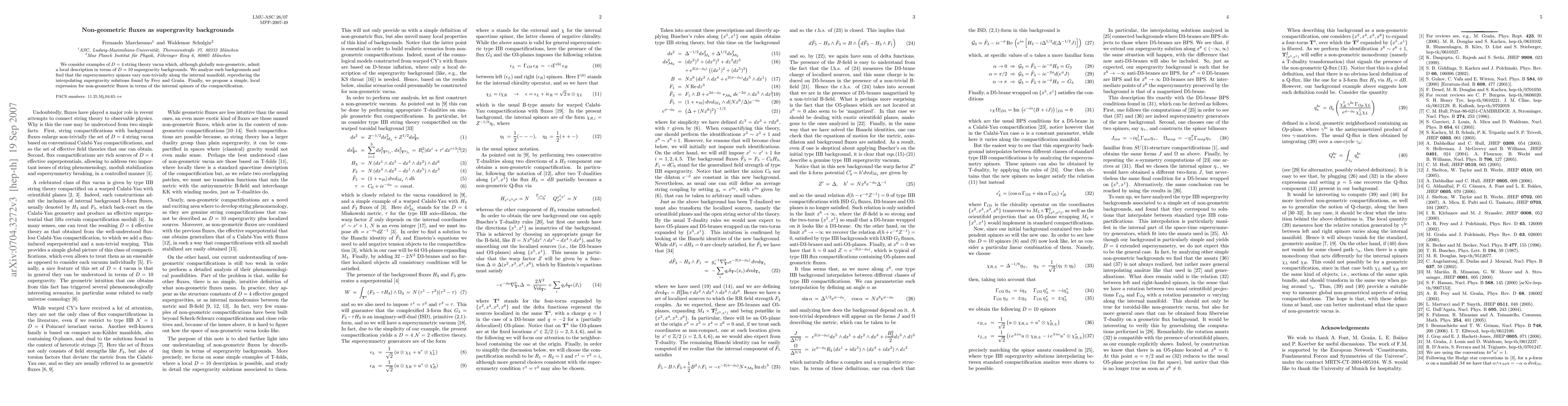This paper explores D=4 string theory vacua that are globally non-geometric but locally describable via D=10 supergravity. It reveals that supersymmetry spinors vary non-trivially in these backgrounds, aligning with previously found supergravity solutions, and proposes a local expression for non-geometric fluxes using internal spinors.