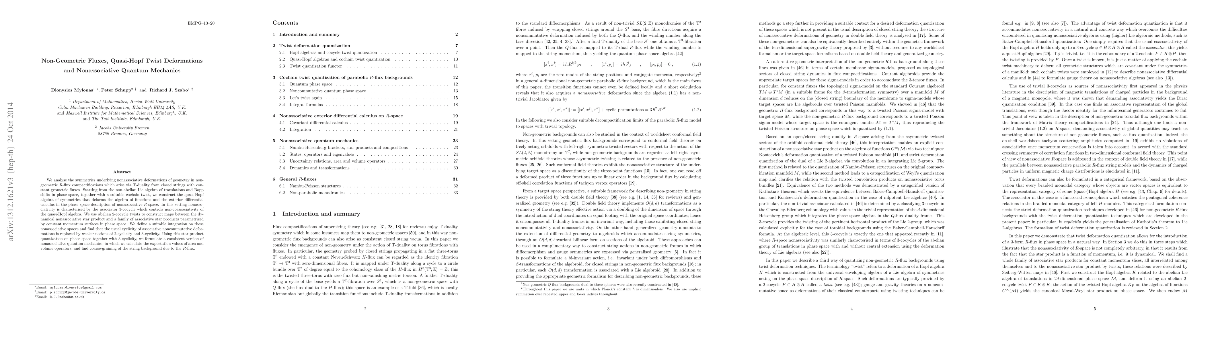 We analyse the symmetries underlying nonassociative deformations of geometry in non-geometric R-flux compactifications which arise via T-duality from closed strings with constant geometric fluxes. Starting from the non-abelian Lie algebra of translations and Bopp shifts in phase space, together with a suitable cochain twist, we construct the quasi-Hopf algebra of symmetries that deforms the algebra of functions and the exterior differential calculus in the phase space description of nonassociative R-space. In this setting nonassociativity is characterised by the associator 3-cocycle which controls non-coassociativity of the quasi-Hopf algebra. We use abelian 2-cocycle twists to construct maps between the dynamical nonassociative star product and a family of associative star products parametrized by constant momentum surfaces in phase space. We define a suitable integration on these nonassociative spaces and find that the usual cyclicity of associative noncommutative deformations is replaced by weaker notions of 2-cyclicity and 3-cyclicity. Using this star product quantization on phase space together with 3-cyclicity, we formulate a consistent version of nonassociative quantum mechanics, in which we calculate the expectation values of area and volume operators, and find coarse-graining of the string background due to the R-flux.