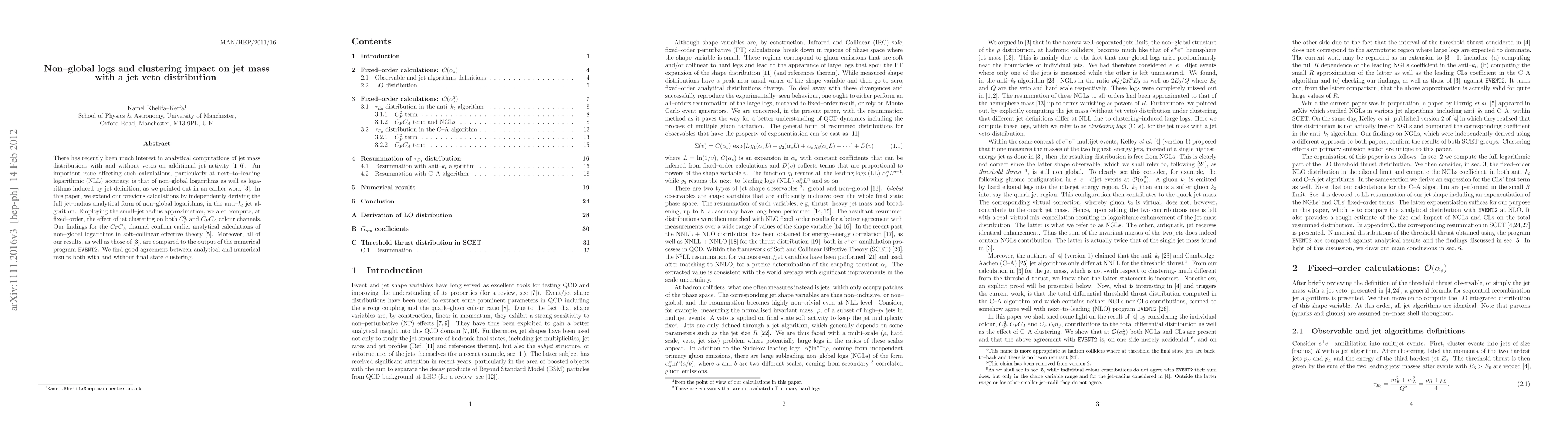 There has recently been much interest in analytical computations of jet mass distributions with and without vetos on additional jet activity [1-6]. An important issue affecting such calculations, particularly at next-to-leading logarithmic (NLL) accuracy, is that of non-global logarithms as well as logarithms induced by jet definition, as we pointed out in an earlier work [3]. In this paper, we extend our previous calculations by independently deriving the full jet-radius analytical form of non-global logarithms, in the anti-$\kt$ jet algorithm. Employing the small-jet radius approximation, we also compute, at fixed-order, the effect of jet clustering on both $\CF^{2}$ and $\CF\CA$ colour channels. Our findings for the $\CF\CA$ channel confirm earlier analytical calculations of non-global logarithms in soft-collinear effective theory [5]. Moreover, all of our results, as well as those of [3], are compared to the output of the numerical program \texttt{EVENT2}. We find good agreement between analytical and numerical results both with and without final state clustering.