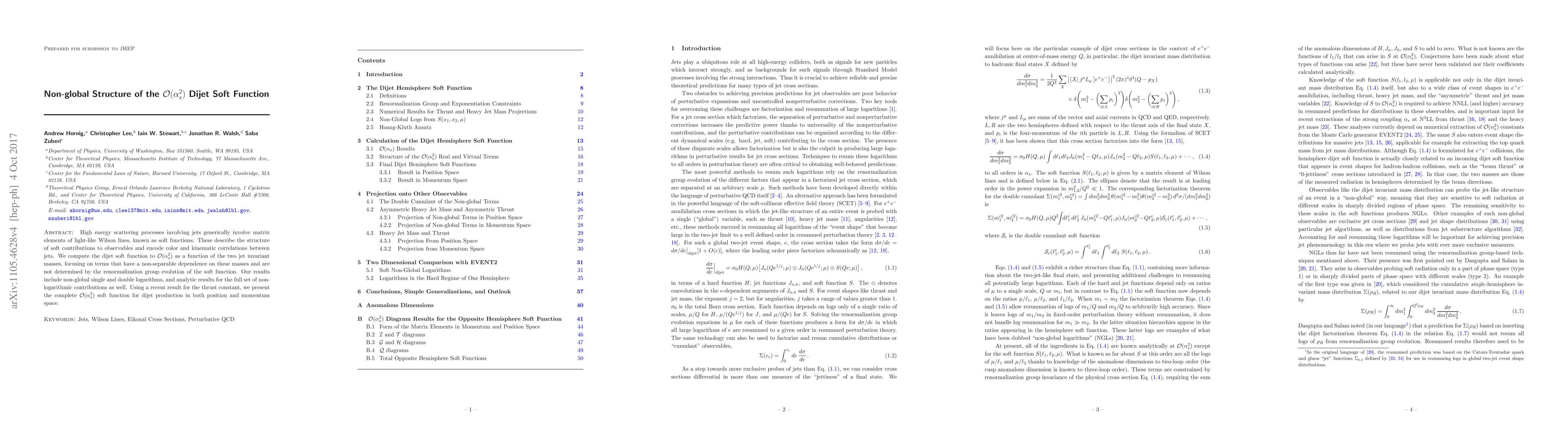High energy scattering processes involving jets generically involve matrix elements of light- like Wilson lines, known as soft functions. These describe the structure of soft contributions to observables and encode color and kinematic correlations between jets. We compute the dijet soft function to O({\alpha}_s^2) as a function of the two jet invariant masses, focusing on terms not determined by its renormalization group evolution that have a non-separable dependence on these masses. Our results include non-global single and double logarithms, and analytic results for the full set of non-logarithmic contributions as well. Using a recent result for the thrust constant, we present the complete O({\alpha}_s^2) soft function for dijet production in both position and momentum space.