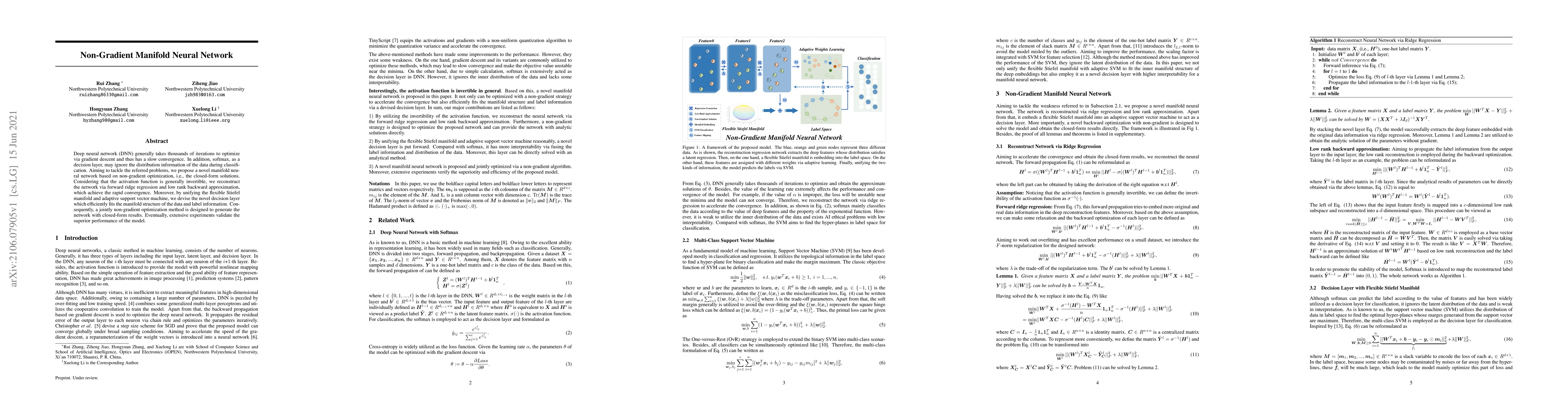 A new type of neural network called a non-gradient manifold neural network is proposed to address slow convergence and poor performance in traditional deep learning models. This approach uses closed-form solutions to optimize the network rapidly and efficiently, leading to improved results in various experiments.