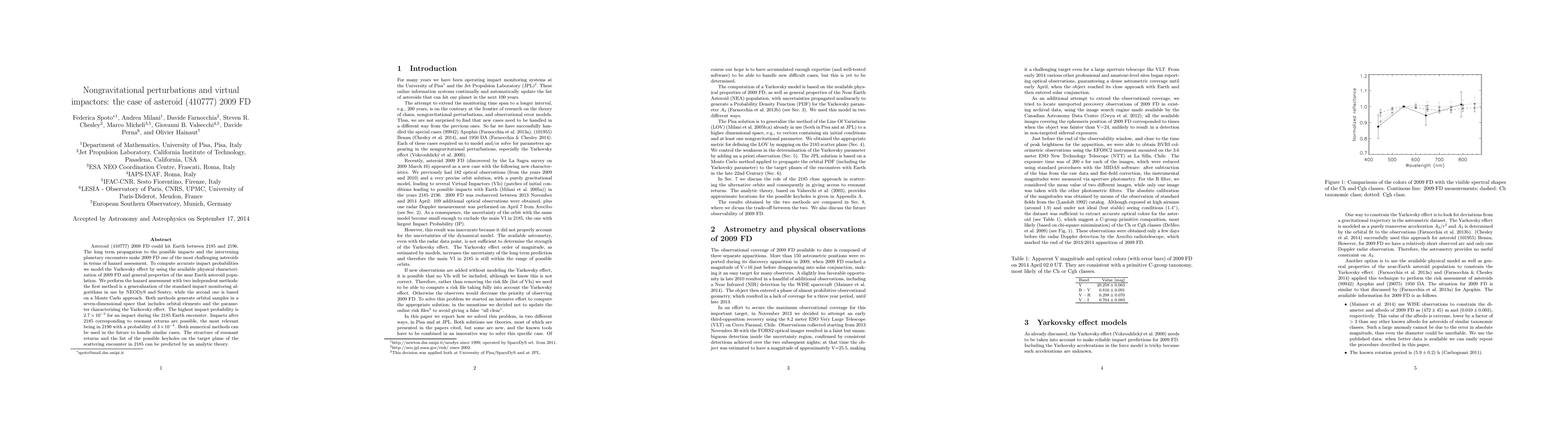 Asteroid 2009 FD could impact Earth between 2185 and 2196. The long term propagation to the possible impacts and the intervening planetary encounters make 2009 FD one of the most challenging asteroids in terms of hazard assessment. To compute accurate impact probabilities we model the Yarkovsky effect by using the available physical characterization of 2009 FD and general properties of the Near Earth Asteroid population. We perform the hazard assessment with two independent methods: the first method is a generalization of the standard impact monitoring algorithms in use by NEODyS and Sentry, while the second one is based on a Monte Carlo approach. Both methods generate orbital samples in a 7 dimensional space that includes orbital elements and the parameter characterizing the Yarkovsky effect. The highest impact probability is $2.7 \times 10^{-3}$ for an impact during the 2185 Earth encounter. Impacts after 2185 corresponding to resonant returns are possible, the most relevant being in 2190 with a probability of $3 \times 10^{-4}$. Both numerical methods can be used in the future to handle similar cases. The structure of resonant returns and the list of the possible keyholes on the Target Plane of the scattering encounter in 2185 can be predicted by an analytic theory.