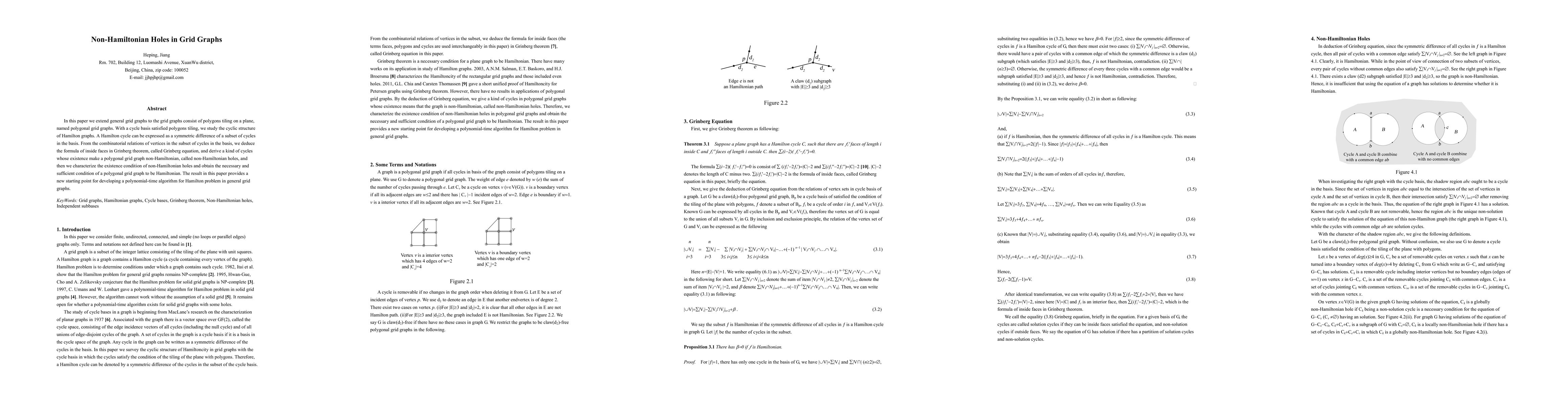 This paper investigates polygonal grid graphs and identifies conditions under which they contain non-Hamiltonian holes, leading to the characterization of graphs that fail to be Hamiltonian. It provides a formula for inside faces and establishes a necessary and sufficient condition for Hamiltonicity, suggesting a new approach for solving the Hamilton problem in grid graphs.