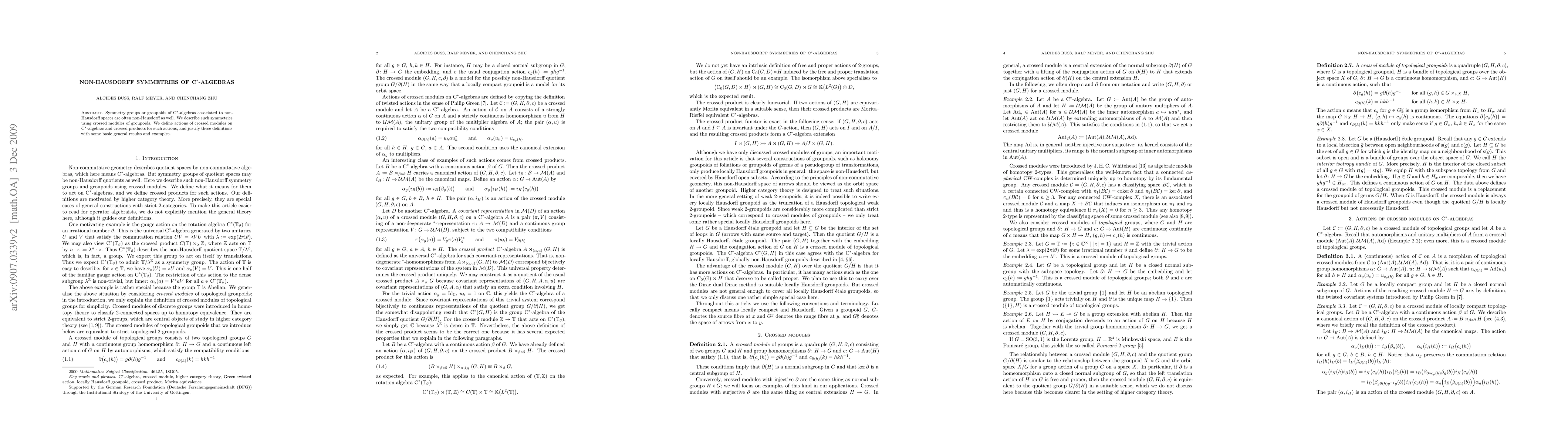 This paper explores symmetries of C*-algebras related to non-Hausdorff spaces, using crossed modules of groupoids to describe these non-standard symmetries. It defines actions and crossed products for these modules and supports these definitions with general results and examples.
