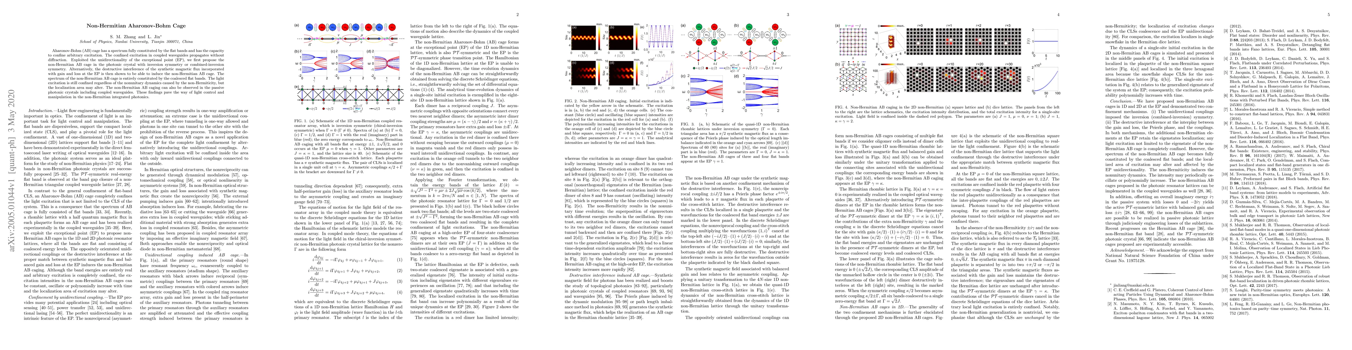 This paper proposes the concept of a non-Hermitian Aharonov-Bohm cage, which confines light excitation in photonic crystals through exceptional points or synthetic magnetic flux, despite nonunitary dynamics. This approach enables light control and manipulation in non-Hermitian integrated photonics.