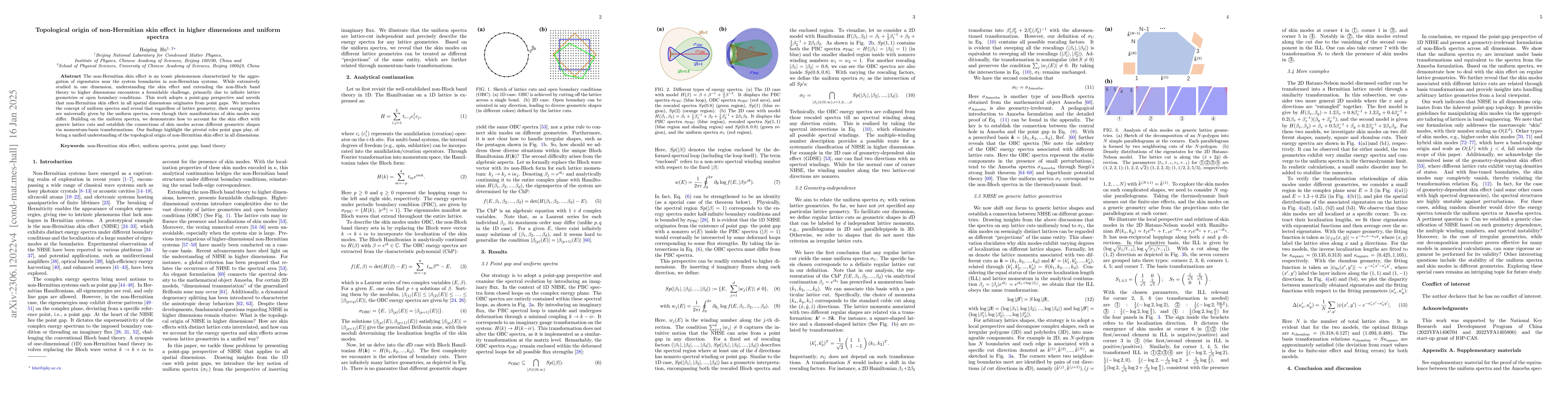 The paper presents a geometry-irrelevant formulation of non-Bloch spectra across all dimensions, demonstrating that uniform spectra σU are invariant under basis transformations and equivalent to spectra from the Amoeba formulation.