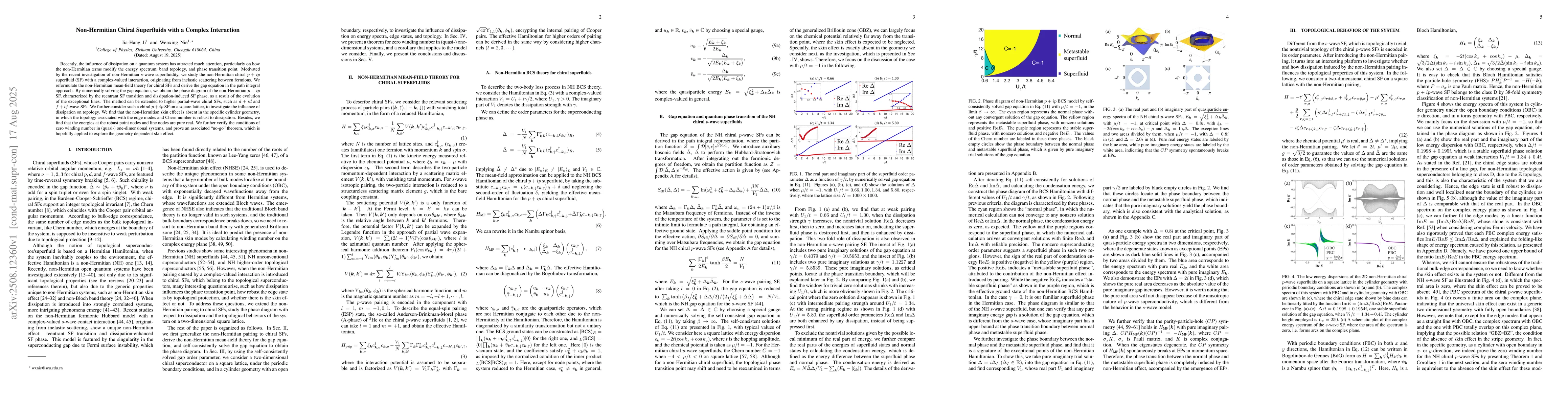 Recently, the influence of dissipation on a quantum system has attracted much attention, particularly on how the non-Hermitian terms modify the energy spectrum, band topology, and phase transition point. Motivated by the recent investigation of non-Hermitian $s$-wave superfluidity, we study the non-Hermitian chiral $p+ip$ superfluid (SF) with a complex-valued interaction, originating from inelastic scattering between fermions. We reformulate the non-Hermitian mean-field theory for chiral SFs and derive the gap equation in the path integral approach. By numerically solving the gap equation, we obtain the phase diagram of the non-Hermitian $p+ip$ SF, characterized by the reentrant SF transition and dissipation-induced SF phase, as a result of the evolution of the exceptional lines. The method can be extended to higher partial-wave chiral SFs, such as $d+id$ and $f+if$-wave SFs. We further consider such a chiral $p+ip$ SF on a square lattice, to investigate the influence of dissipation on topology. We find that the non-Hermitian skin effect is absent in the specific cylinder geometry, in which the topology associated with the edge modes and Chern number is robust to dissipation. Besides, we find that the energies at the robust point nodes and line nodes are pure real. We further verify the conditions of zero winding number in (quasi-) one-dimensional systems, and prove an associated ``no-go'' theorem, which is hopefully applied to explore the geometry dependent skin effect.