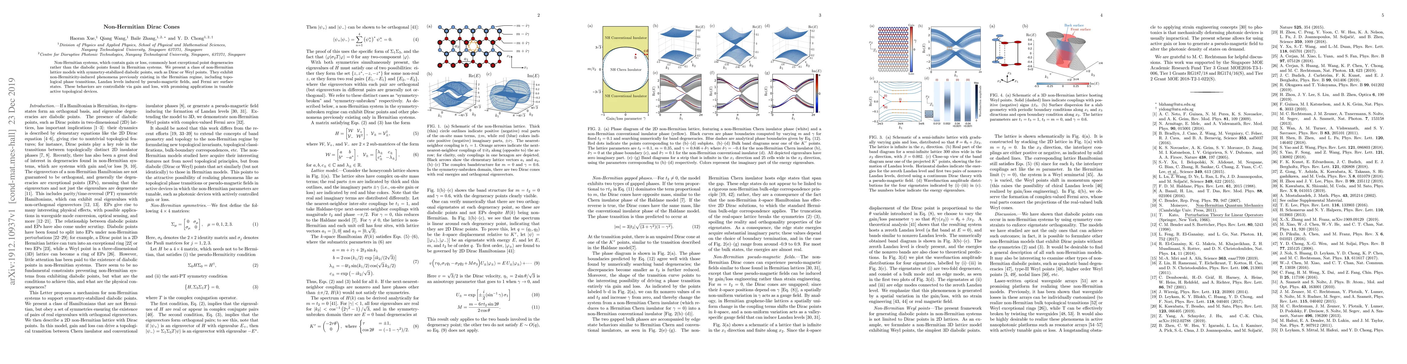 Non-Hermitian systems, which contain gain or loss, commonly host exceptional point degeneracies rather than the diabolic points found in Hermitian systems. We present a class of non-Hermitian lattice models with symmetry-stabilized diabolic points, such as Dirac or Weyl points. They exhibit non-Hermiticity-induced phenomena previously existing in the Hermitian regime, including topological phase transitions, Landau levels induced by pseudo-magnetic fields, and Fermi arc surface states. These behaviors are controllable via gain and loss, with promising applications in tunable active topological devices.