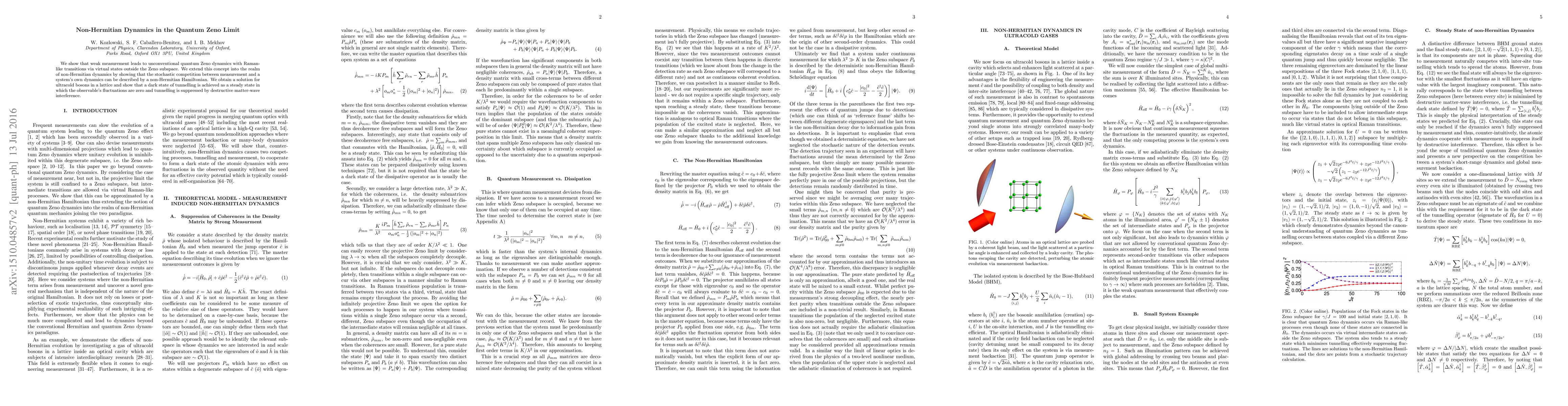 This paper explores non-Hermitian dynamics in the quantum Zeno limit, demonstrating how weak, infrequent measurements can lock a quantum system into a Zeno subspace through Raman-like transitions. It introduces a non-Hermitian Hamiltonian to describe the competition between measurement and system dynamics, revealing a dark state that suppresses tunnelling and observable fluctuations.
