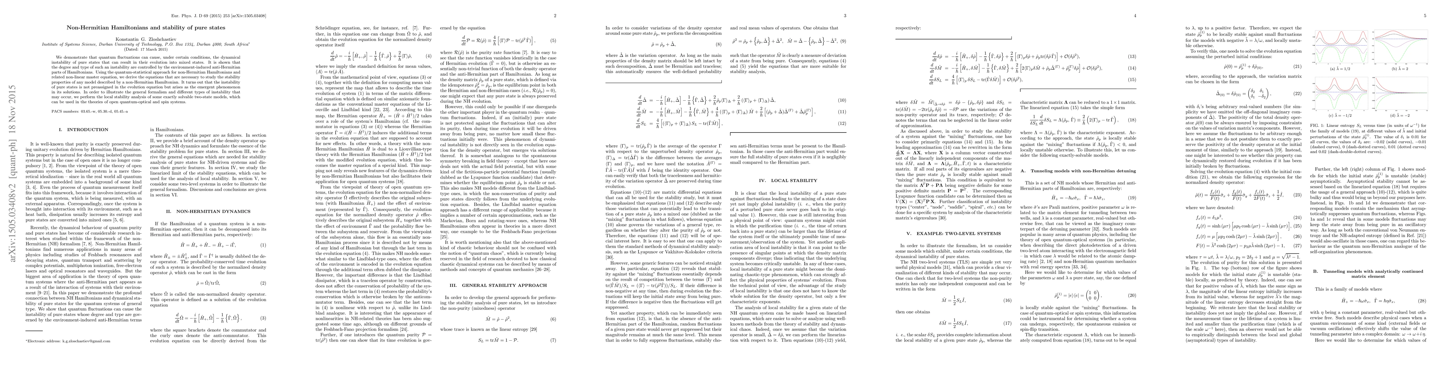 We demonstrate that quantum fluctuations can cause, under certain conditions, the dynamical instability of pure states that can result in their evolution into mixed states. It is shown that the degree and type of such an instability are controlled by the environment-induced anti-Hermitian parts of Hamiltonians. Using the quantum-statistical approach for non-Hermitian Hamiltonians and related non-linear master equation, we derive the equations that are necessary to study the stability properties of any model described by a non-Hermitian Hamiltonian. It turns out that the instability of pure states is not preassigned in the evolution equation but arises as the emergent phenomenon in its solutions. In order to illustrate the general formalism and different types of instability that may occur, we perform the local stability analysis of some exactly solvable two-state models, which can be used in the theories of open quantum-optical and spin systems.