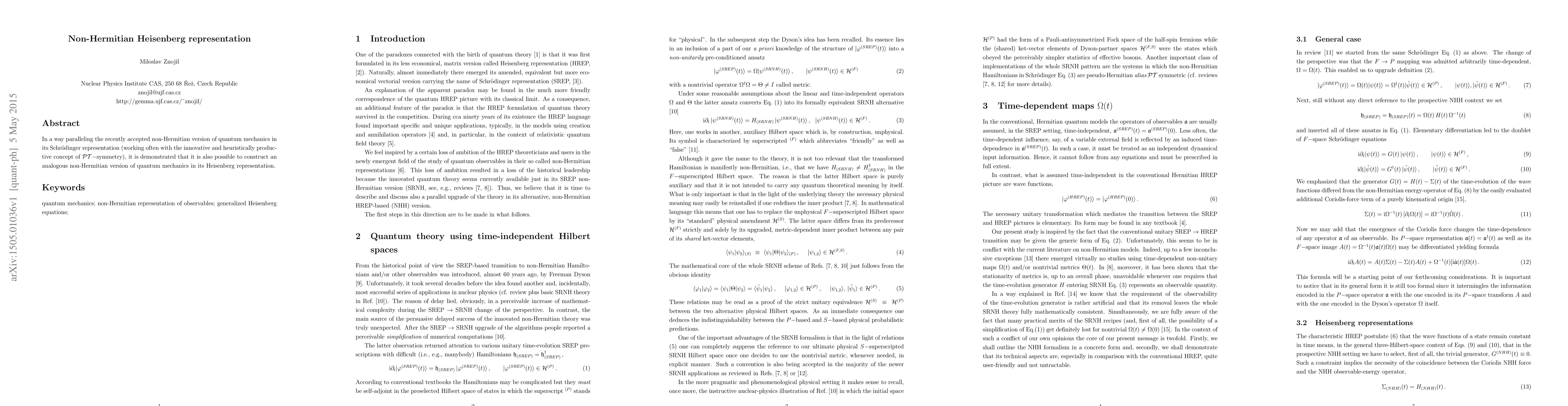 The paper presents a formalism for non-Hermitian Heisenberg representation, including time-dependent non-unitary maps and non-trivial metrics, which is user-friendly and mathematically consistent.