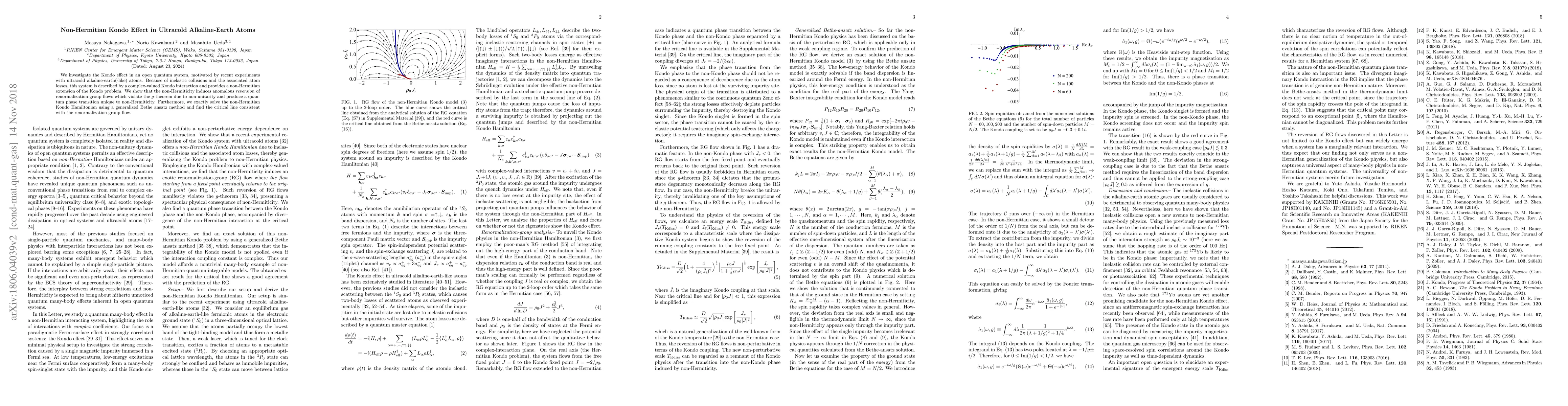 This study explores the non-Hermitian Kondo effect in ultracold alkaline-earth atoms, revealing that the non-unitarity induced by atom losses leads to a unique quantum phase transition and anomalous renormalization-group flow reversal, solved exactly via a generalized Bethe ansatz.