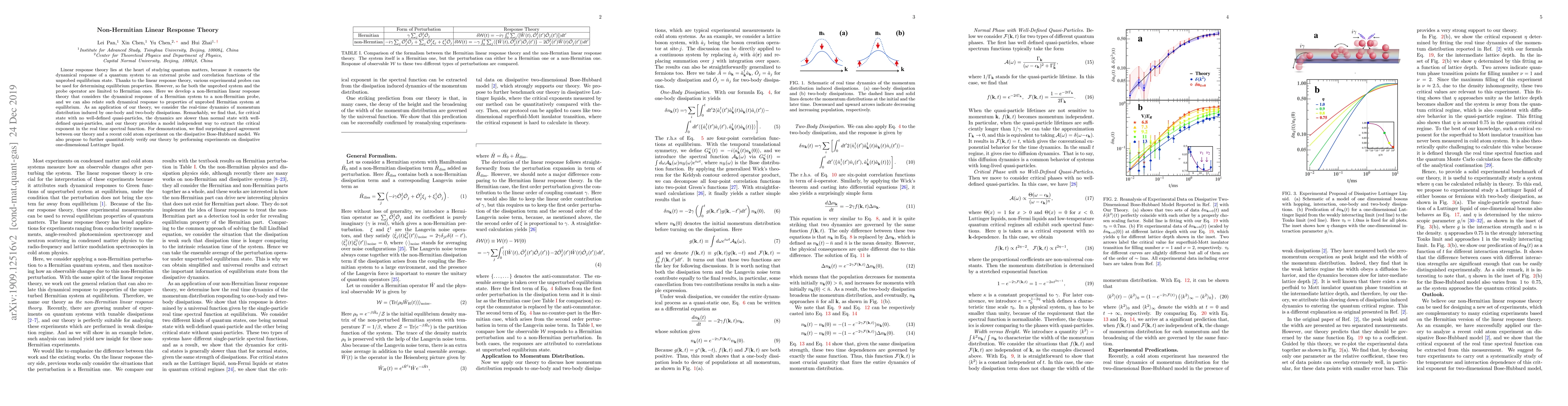 This paper develops a non-Hermitian linear response theory to describe the dynamical response of Hermitian systems to non-Hermitian probes, revealing universal functions governing momentum distribution dynamics and proposing a model-independent method to extract critical exponents. The theory is validated against experimental data on the Bose-Hubbard model and suggests further experimental verification on Luttinger liquids.