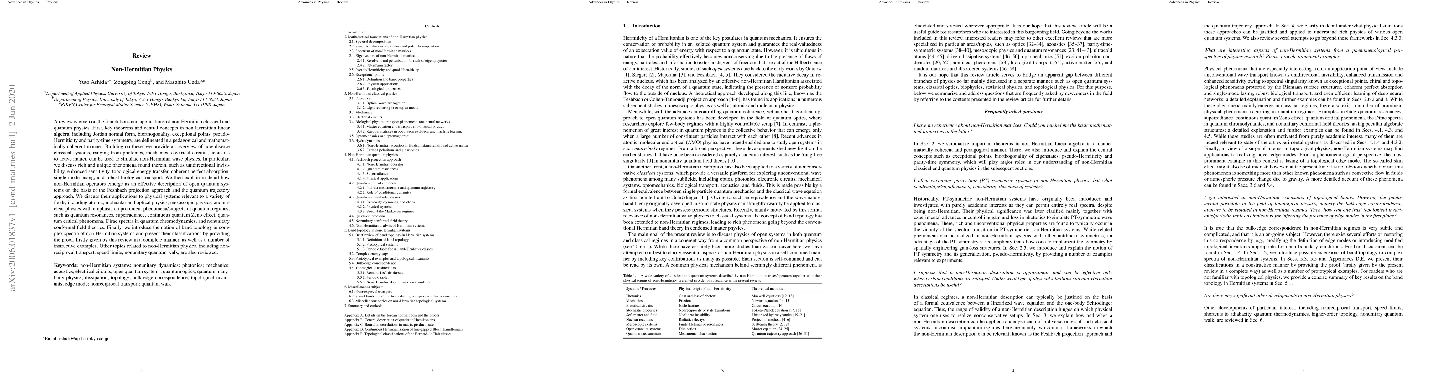 This paper reviews foundational concepts and applications of non-Hermitian physics, including key theorems in non-Hermitian linear algebra and their relevance to diverse classical systems. It explores phenomena such as unidirectional invisibility, topological energy transfer, and quantum resonances, and discusses the classification of band topology in complex spectra of non-Hermitian systems.