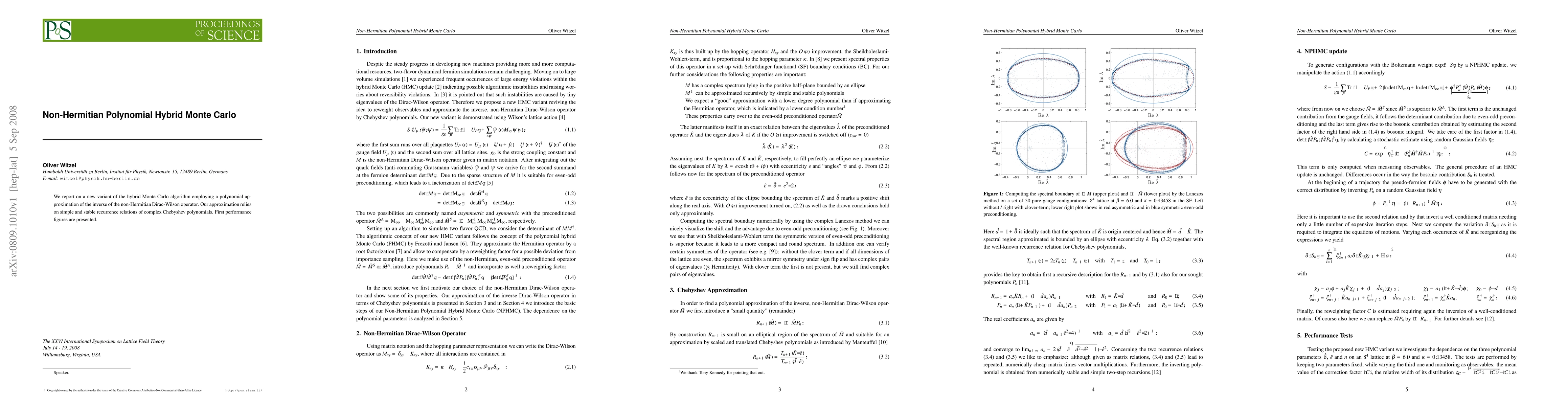 This paper introduces a novel hybrid Monte Carlo algorithm using a polynomial approximation of the inverse of the non-Hermitian Dirac-Wilson operator, leveraging stable recurrence relations of complex Chebyshev polynomials, and presents initial performance results.