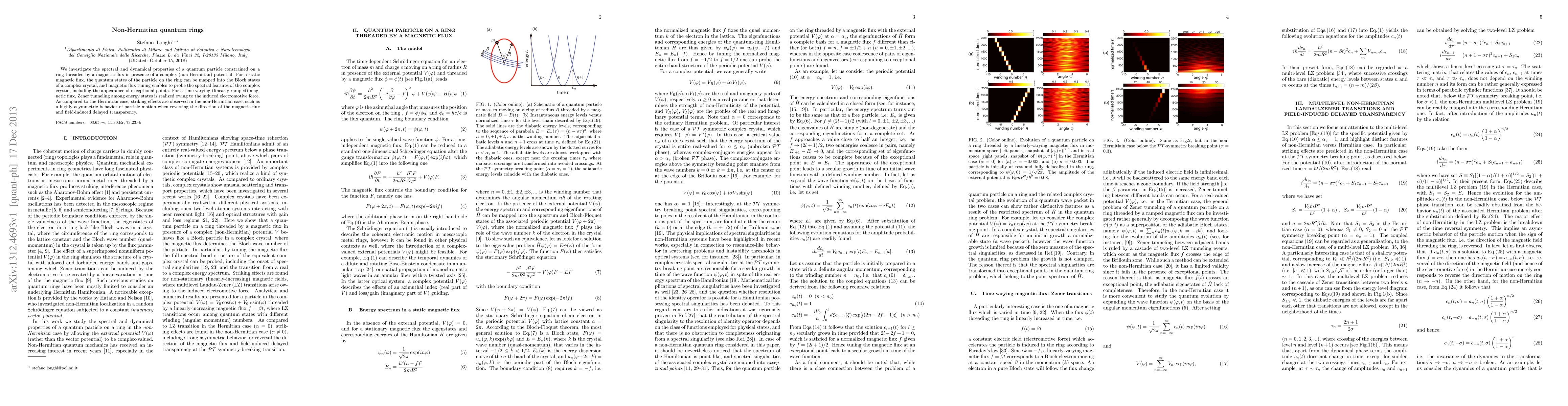 Researchers investigate the properties of a quantum particle in a ring with a non-Hermitian potential and magnetic flux, revealing striking effects such as field-induced delayed transparency and Zener tunneling.