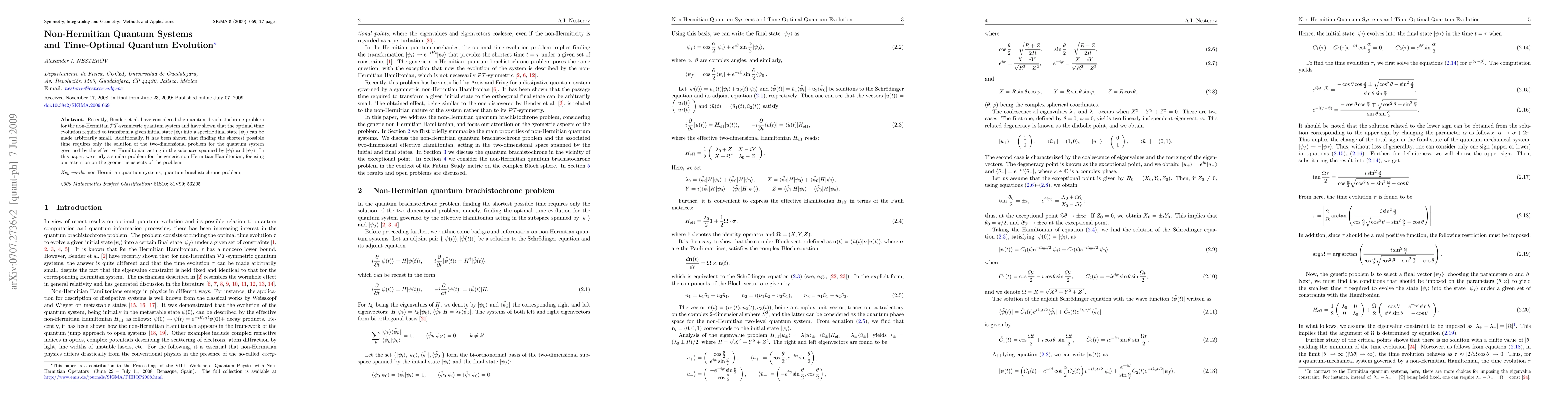 Recently, Bender et al. have considered the quantum brachistochrone problem for the non-Hermitian $\cal PT$-symmetric quantum system and have shown that the optimal time evolution required to transform a given initial state $|\psi_i\rangle$ into a specific final state $|\psi_f\rangle$ can be made arbitrarily small. Additionally, it has been shown that finding the shortest possible time requires only the solution of the two-dimensional problem for the quantum system governed by the effective Hamiltonian acting in the subspace spanned by $|\psi_i\rangle$ and $|\psi_f\rangle$. In this paper, we study a similar problem for the generic non-Hermitian Hamiltonian, focusing our attention on the geometric aspects of the problem.