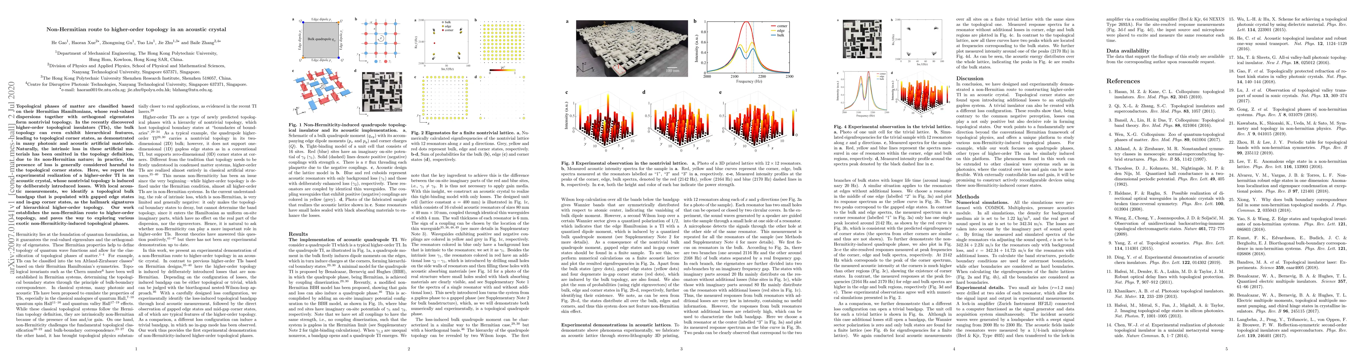 This paper experimentally realizes a higher-order topological insulator in an acoustic crystal using non-Hermitian methods, introducing losses to achieve topological corner states typically seen in lossless systems. The study identifies topological bulk bandgaps with edge and corner states, demonstrating non-Hermitian routes to higher-order topology.