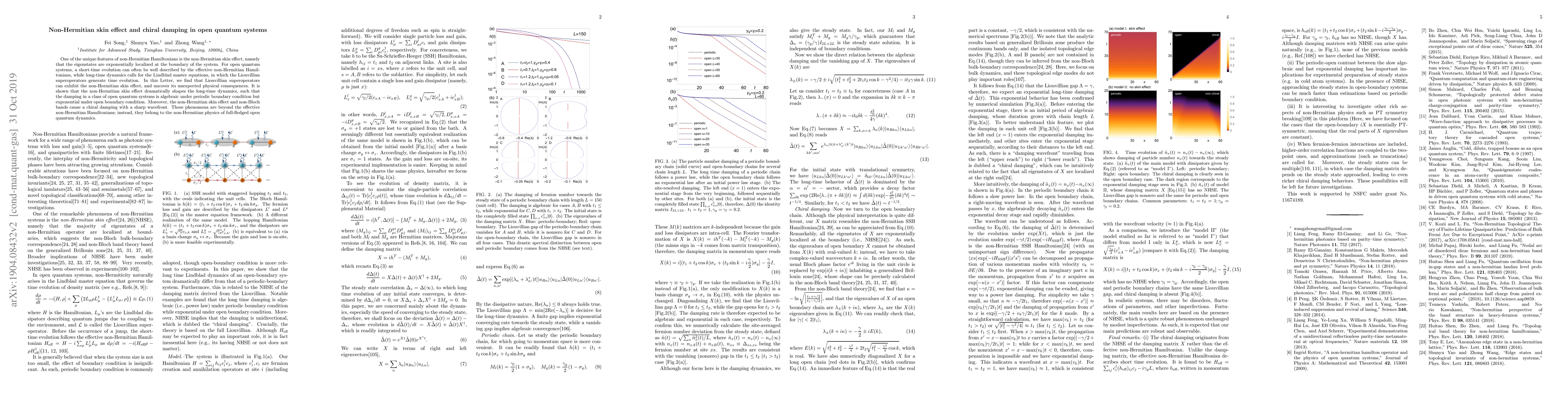 This research demonstrates that non-Hermitian skin effect in open quantum systems leads to unique long-time dynamics, resulting in algebraic damping under periodic boundaries and exponential damping under open boundaries, alongside chiral damping driven by non-Bloch bands. These findings highlight the broader implications of non-Hermitian physics in fully describing quantum dynamics.