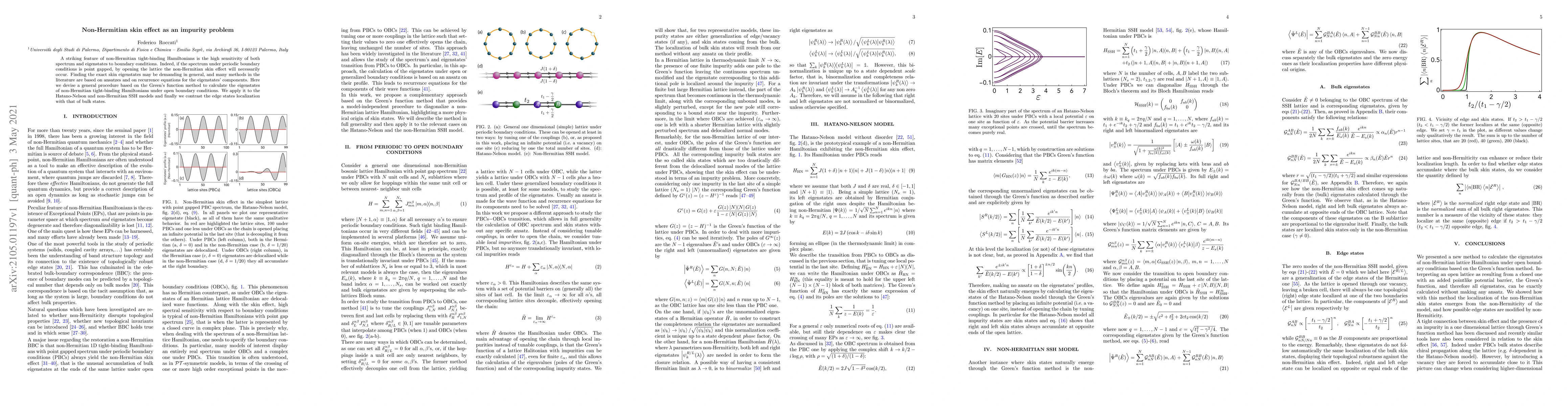 This paper develops a novel Green's function method to determine the eigenstates of non-Hermitian tight-binding Hamiltonians under open boundary conditions, demonstrating the non-Hermitian skin effect. The method is applied to the Hatano-Nelson and non-Hermitian SSH models, highlighting the localization of edge states compared to bulk states.