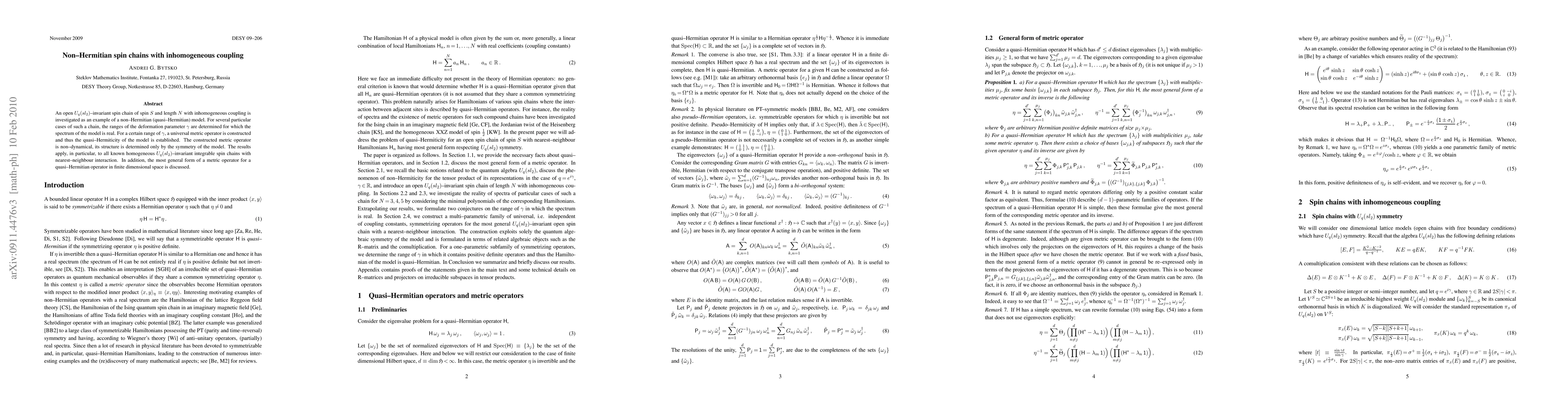 This paper investigates non-Hermitian spin chains with inhomogeneous coupling, determining the parameter ranges for real spectra and constructing a universal metric operator to establish quasi-Hermiticity. The results extend to all known homogeneous U_q(sl_2)-invariant integrable spin chains and discuss the general form of metric operators in finite-dimensional spaces.
