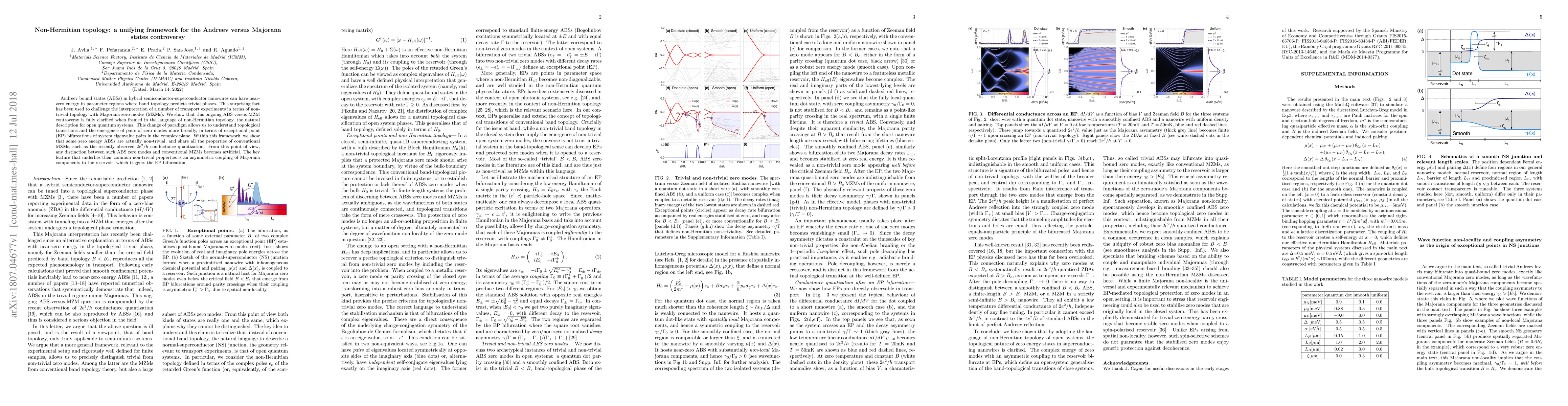 Andreev bound states (ABSs) in hybrid semiconductor-superconductor nanowires can have near-zero energy in parameter regions where band topology predicts trivial phases. This surprising fact has been used to challenge the interpretation of a number of transport experiments in terms of non-trivial topology with Majorana zero modes (MZMs). We show that this ongoing ABS versus MZM controversy is fully clarified when framed in the language of non-Hermitian topology, the natural description for open quantum systems. This change of paradigm allows us to understand topological transitions and the emergence of pairs of zero modes more broadly, in terms of exceptional point (EP) bifurcations of system eigenvalue pairs in the complex plane. Within this framework, we show that some zero energy ABSs are actually non-trivial, and share all the properties of conventional MZMs, such as the recently observed $2e^2/h$ conductance quantization. From this point of view, any distinction between such ABS zero modes and conventional MZMs becomes artificial. The key feature that underlies their common non-trivial properties is an asymmetric coupling of Majorana components to the reservoir, which triggers the EP bifurcation.