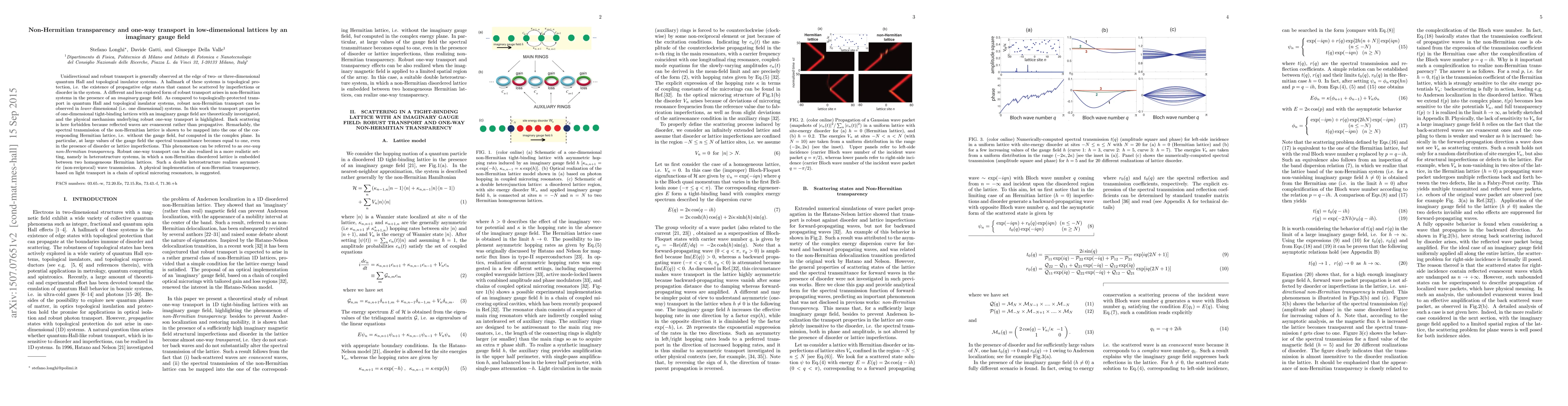 Unidirectional and robust transport is generally observed at the edge of two- or three-dimensional quantum Hall and topological insulator systems. A hallmark of these systems is topological protection, i.e. the existence of propagative edge states that cannot be scattered by imperfections or disorder in the system. A different and less explored form of robust transport arises in non-Hermitian systems in the presence of an {\it imaginary} gauge field. As compared to topologically-protected transport in quantum Hall and topological insulator systems, robust non-Hermitian transport can be observed in {\it lower} dimensional (i.e. one dimensional) systems. In this work the transport properties of one-dimensional tight-binding lattices with an imaginary gauge field are theoretically investigated, and the physical mechanism underlying robust one-way transport is highlighted. Back scattering is here forbidden because reflected waves are evanescent rather than propagative. Remarkably, the spectral transmission of the non-Hermitian lattice is shown to be mapped into the one of the corresponding Hermitian lattice, i.e. without the gauge field, {\it but} computed in the complex plane. In particular, at large values of the gauge field the spectral transmittance becomes equal to one, even in the presence of disorder or lattice imperfections. This phenomenon can be referred to as {\it one-way non-Hermitian transparency}. Robust one-way transport can be also realized in a more realistic setting, namely in heterostructure systems, in which a non-Hermitian disordered lattice is embedded between two homogeneous Hermitian lattices. Such a double heterostructure realizes asymmetric (non-reciprocal) wave transmission. A physical implementation of non-Hermtian transparency, based on light transport in a chain of optical microring resonators, is suggested.