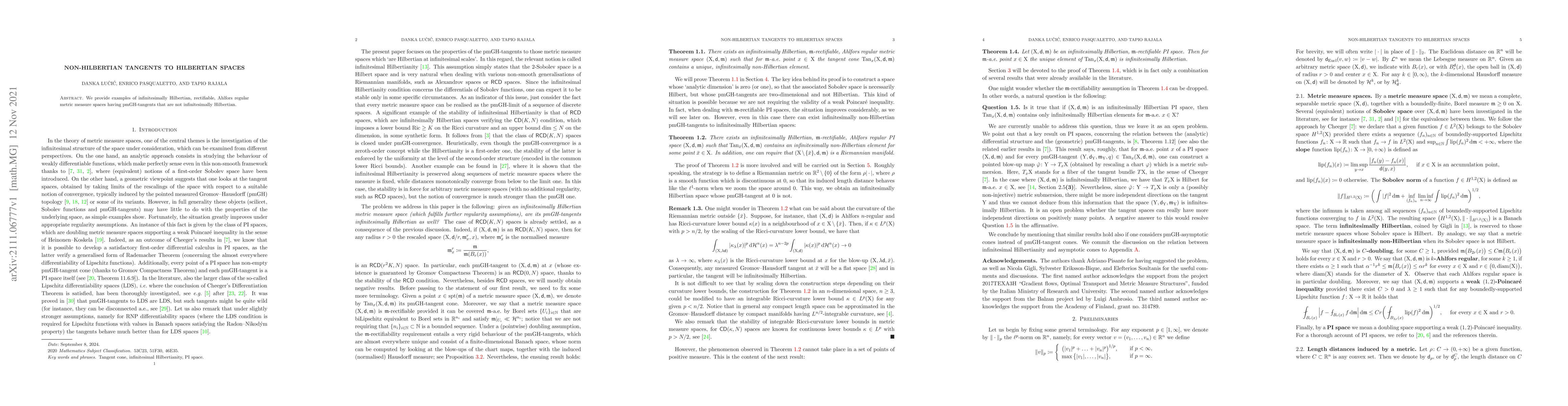 We provide examples of infinitesimally Hilbertian, rectifiable, Ahlfors regular metric measure spaces having pmGH-tangents that are not infinitesimally Hilbertian.