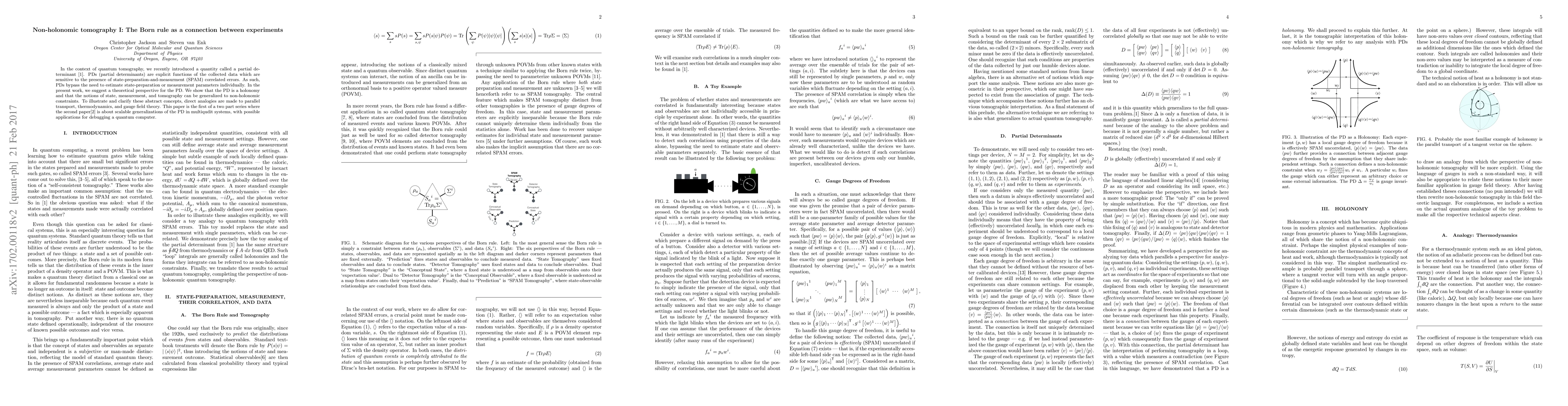 In the context of quantum tomography, we recently introduced a quantity called a partial determinant \cite{jackson2015detecting}. PDs (partial determinants) are explicit functions of the collected data which are sensitive to the presence of state-preparation-and-measurment (SPAM) correlated errors. As such, PDs bypass the need to estimate state-preparation or measurement parameters individually. In the present work, we suggest a theoretical perspective for the PD. We show that the PD is a holonomy and that the notions of state, measurement, and tomography can be generalized to non-holonomic constraints. To illustrate and clarify these abstract concepts, direct analogies are made to parallel transport, thermodynamics, and gauge field theory. This paper is the first of a two part series where the second paper [2] is about scalable applications of the PD to multiqudit systems.