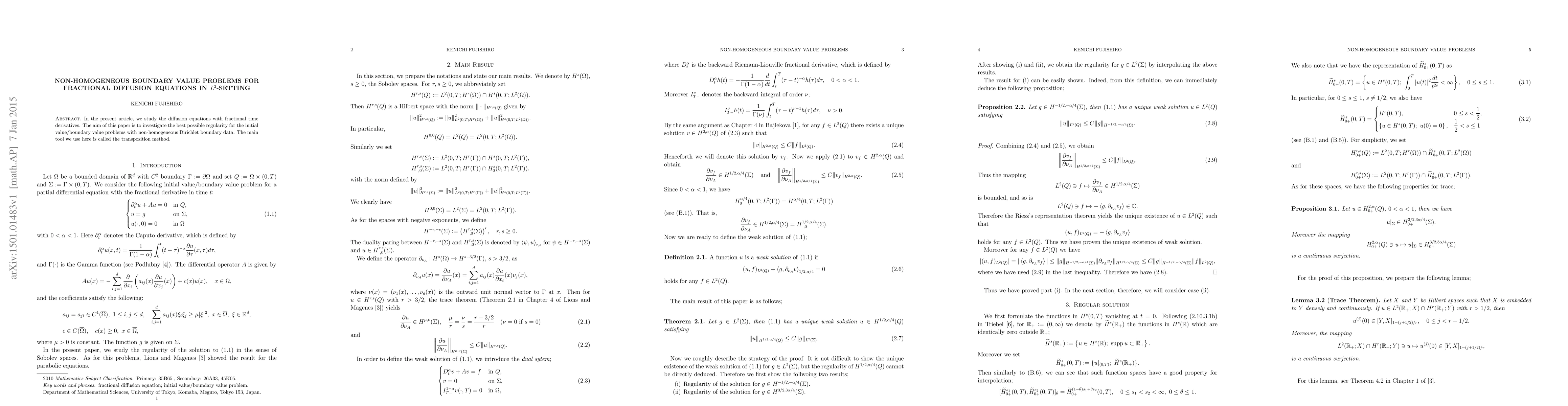 Summary: This paper investigates the regularity of solutions to non-homogeneous boundary value problems for fractional diffusion equations using the transposition method, focusing on the best possible conditions for non-homogeneous Dirichlet boundary data.