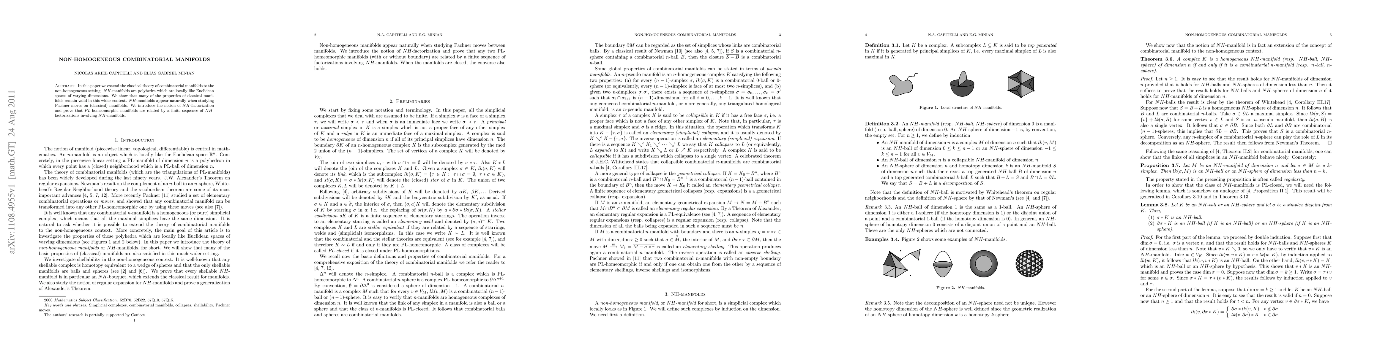 In this paper we extend the classical theory of combinatorial manifolds to the non-homogeneous setting. NH-manifolds are polyhedra which are locally like Euclidean spaces of varying dimensions. We show that many of the properties of classical manifolds remain valid in this wider context. NH-manifolds appear naturally when studying Pachner moves on (classical) manifolds. We introduce the notion of NH-factorization and prove that PL-homeomorphic manifolds are related by a finite sequence of NH-factorizations involving NH-manifolds.