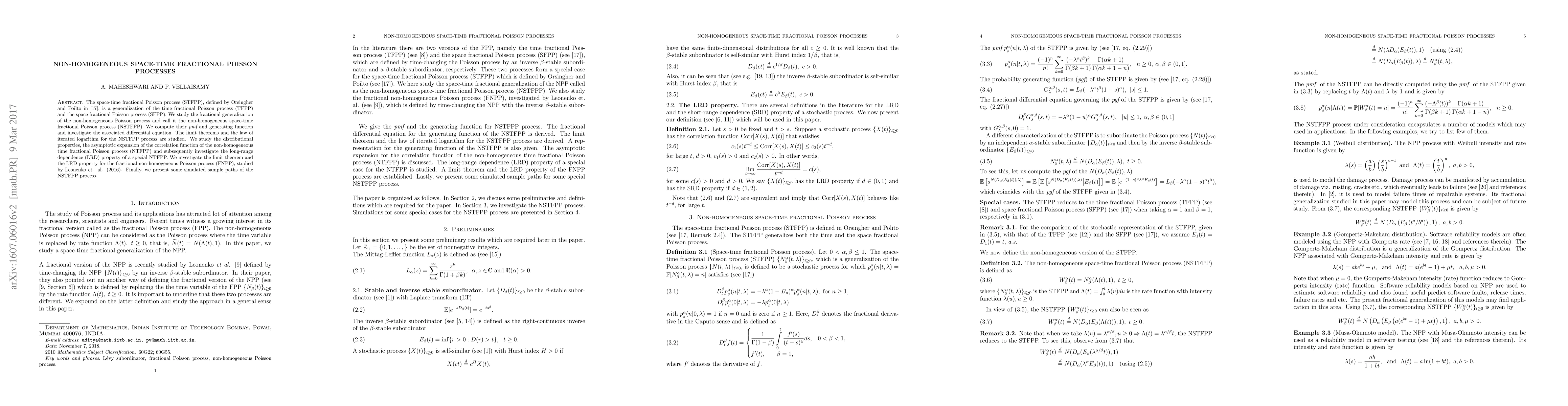 The space-time fractional Poisson process (STFPP), defined by Orsingher and Poilto in \cite{sfpp}, is a generalization of the time fractional Poisson process (TFPP) and the space fractional Poisson process (SFPP). We study the fractional generalization of the non-homogeneous Poisson process and call it the non-homogeneous space-time fractional Poisson process (NSTFPP). We compute their {\it pmf} and generating function and investigate the associated differential equation. The limit theorems and the law of iterated logarithm for the NSTFPP process are studied. We study the distributional properties, the asymptotic expansion of the correlation function of the non-homogeneous time fractional Poisson process (NTFPP) and subsequently investigate the long-range dependence (LRD) property of a special NTFPP. We investigate the limit theorem and the LRD property for the fractional non-homogeneous Poisson process (FNPP), studied by Leonenko et. al. (2016). Finally, we present some simulated sample paths of the NSTFPP process.