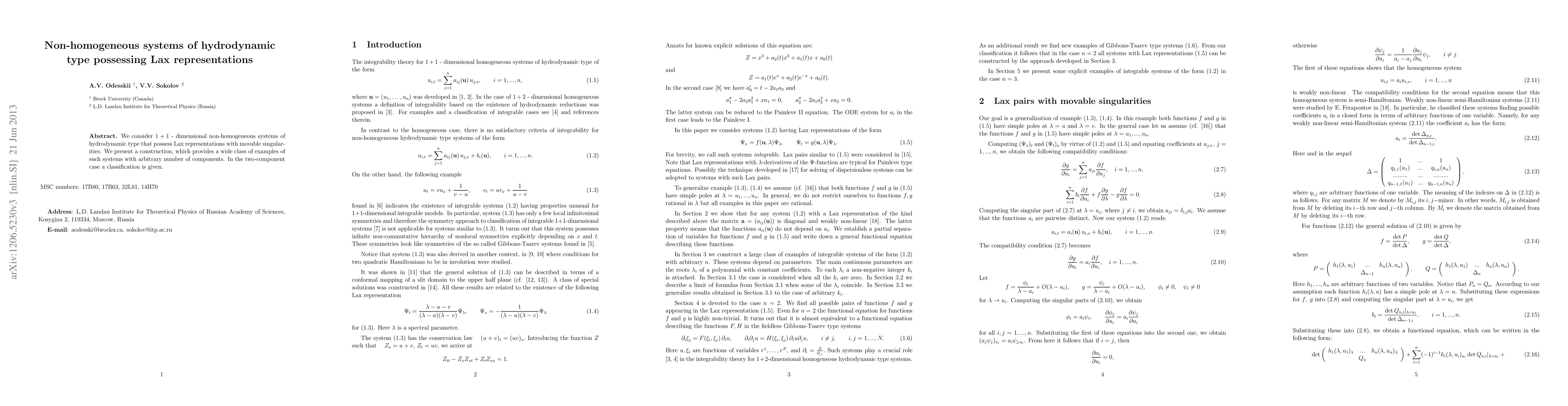 We consider 1+1 - dimensional non-homogeneous systems of hydrodynamic type that possess Lax representations with movable singularities. We present a construction, which provides a wide class of examples of such systems with arbitrary number of components. In the two-component case a classification is given.
