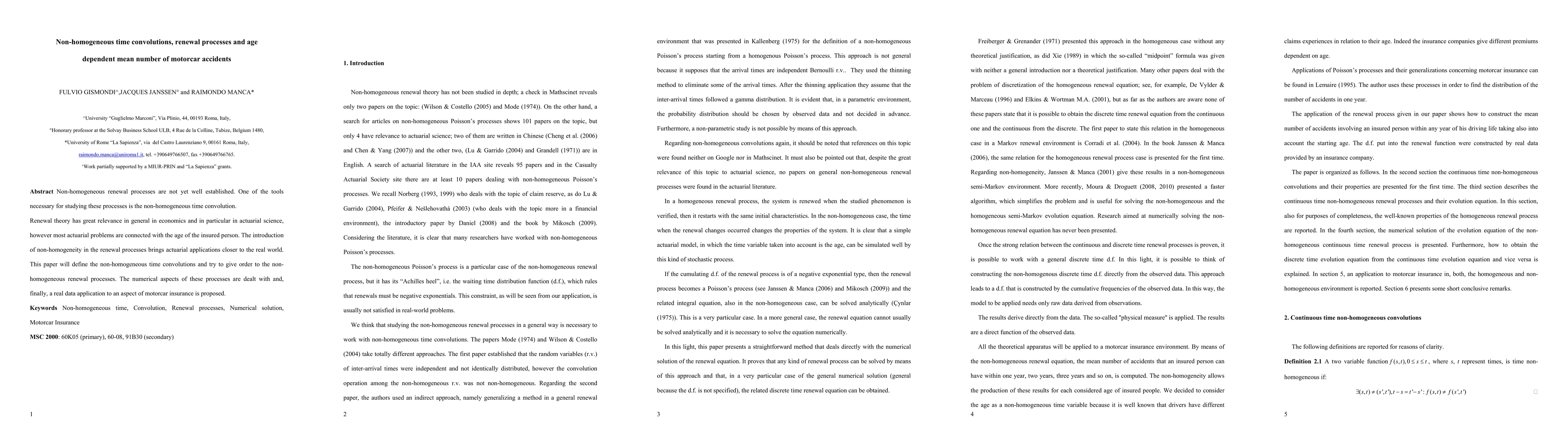 This paper explores non-homogeneous time convolutions and renewal processes to better understand real-world motorcar insurance data. It introduces a new tool for studying non-homogeneous renewal processes, bringing actuarial science closer to reality.