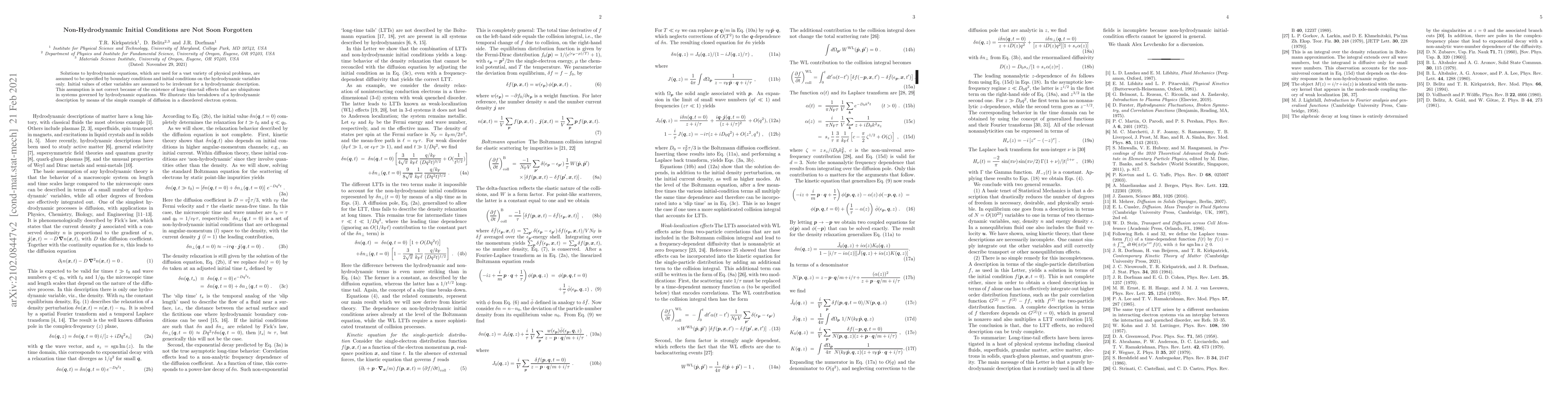 Solutions to hydrodynamic equations, which are used for a vast variety of physical problems, are assumed to be specified by boundary conditions and initial conditions on the hydrodynamic variables only. Initial values of other variables are assumed to be irrelevant for a hydrodynamic description. This assumption is not correct because of the existence of long-time-tail effects that are ubiquitous in systems governed by hydrodynamic equations. We illustrate this breakdown of a hydrodynamic description by means of the simple example of diffusion in a disordered electron system.