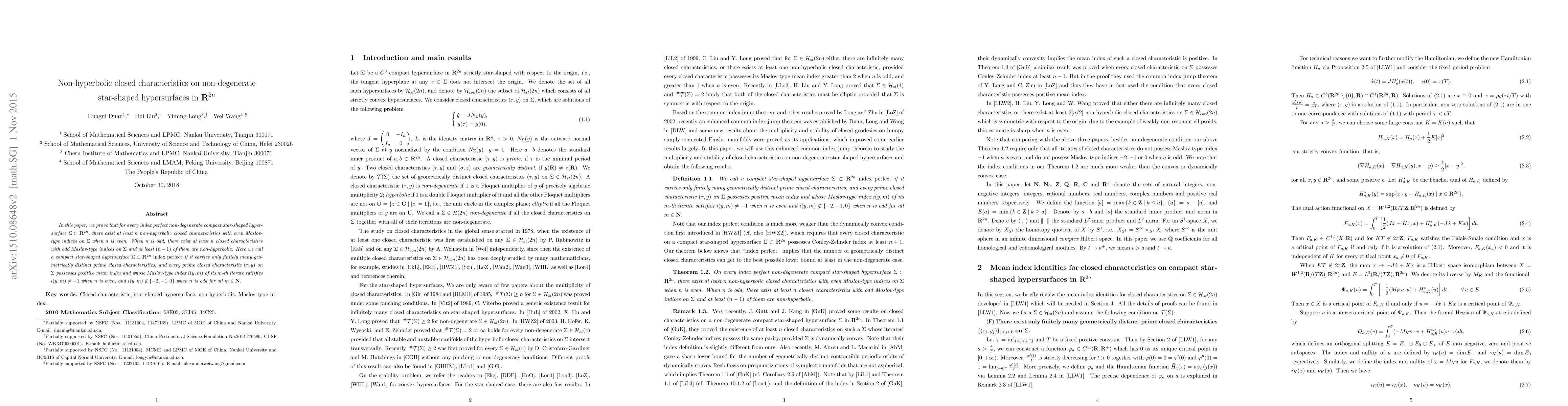 In this paper, we prove that for every index perfect non-degenerate compact star-shaped hypersurface $\Sigma\subset{\bf R}^{2n}$, there exist at least $n$ non-hyperbolic closed characteristics with even Maslov-type indices on $\Sigma$ when $n$ is even. When $n$ is odd, there exist at least $n$ closed characteristics with odd Maslov-type indices on $\Sigma$ and at least $(n-1)$ of them are non-hyperbolic. Here we call a compact star-shaped hypersurface $\Sigma\subset {\bf R}^{2n}$ {\rm index perfect} if it carries only finitely many geometrically distinct prime closed characteristics, and every prime closed characteristic $(\tau,y)$ on $\Sigma$ possesses positive mean index and whose Maslov-type index $i(y, m)$ of its $m$-th iterate satisfies $i(y, m)\not= -1$ when $n$ is even, and $i(y, m)\not\in \{-2,-1,0\}$ when $n$ is odd for all $m\in {\bf N}$.