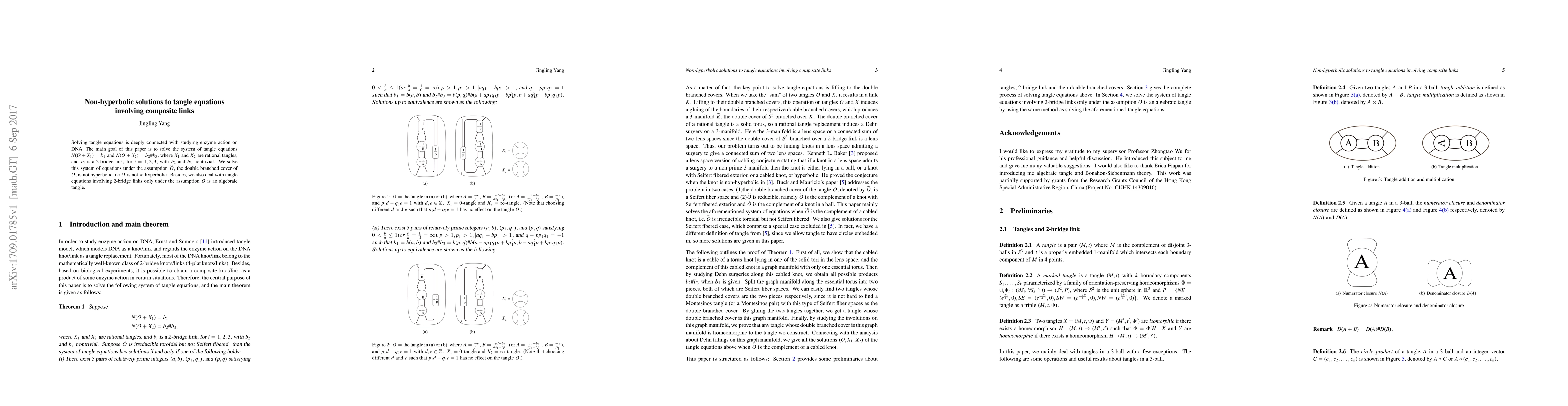 This paper addresses the solution of tangle equations related to enzyme action on DNA, specifically solving $N(O+X_1)=b_1$ and $N(O+X_2)=b_2 \# b_3$ under the assumption that $O$ is not $\pi$-hyperbolic. It also explores tangle equations involving 2-bridge links when $O$ is an algebraic tangle.