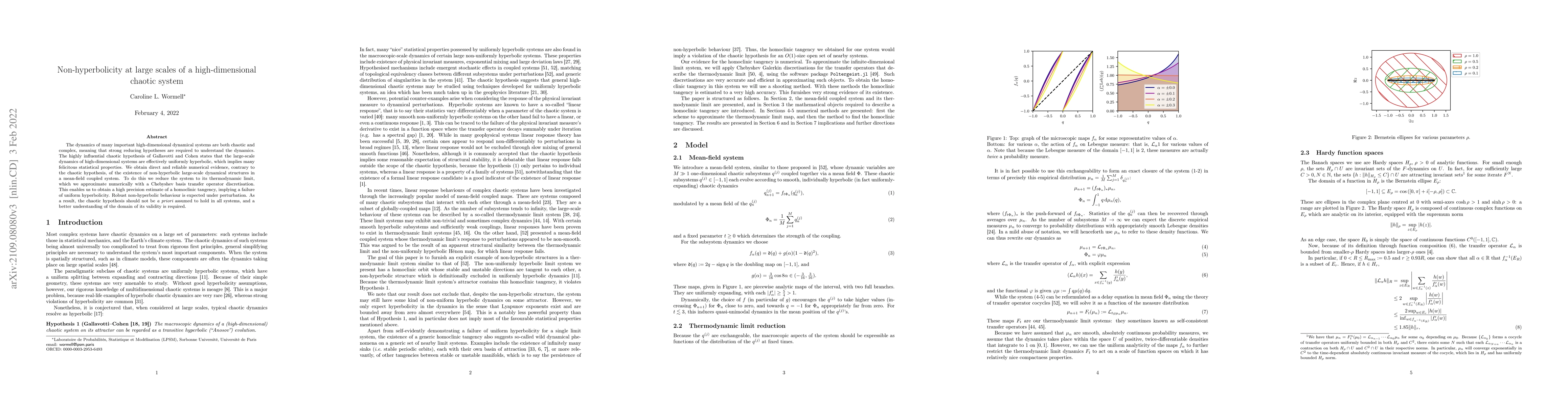 The dynamics of many important high-dimensional dynamical systems are both chaotic and complex, meaning that strong reducing hypotheses are required to understand the dynamics. The highly influential chaotic hypothesis of Gallavotti and Cohen states that the large-scale dynamics of high-dimensional systems are effectively uniformly hyperbolic, which implies many felicitous statistical properties. We obtain direct and reliable numerical evidence, contrary to the chaotic hypothesis, of the existence of non-hyperbolic large-scale dynamical structures in a mean-field coupled system. To do this we reduce the system to its thermodynamic limit, which we approximate numerically with a Chebyshev basis transfer operator discretisation. This enables us to obtain a high precision estimate of a homoclinic tangency, implying a failure of uniform hyperbolicity. Robust non-hyperbolic behaviour is expected under perturbation. As a result, the chaotic hypothesis should not be {\it a priori} assumed to hold in all systems, and a better understanding of the domain of its validity is required.