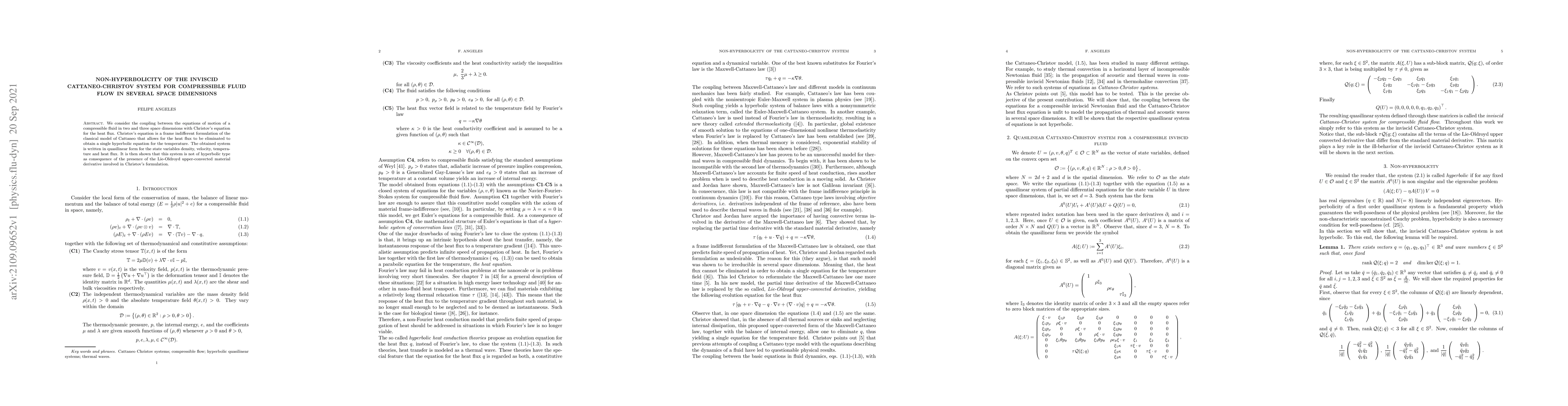 We consider the coupling between the equations of motion of a compressible fluid in two and three space dimensions with Christov's equation for the heat flux. Christov's equation is a frame indifferent formulation of the classical model of Cattaneo that allows for the heat flux to be eliminated to obtain a single hyperbolic equation for the temperature. The obtained system is written in quasilinear form for the state variables density, velocity, temperature and heat flux. It is then shown that this system is not of hyperbolic type as consequence of the presence of the Lie-Oldroyd upper convected material derivative involved in Christov's formulation.