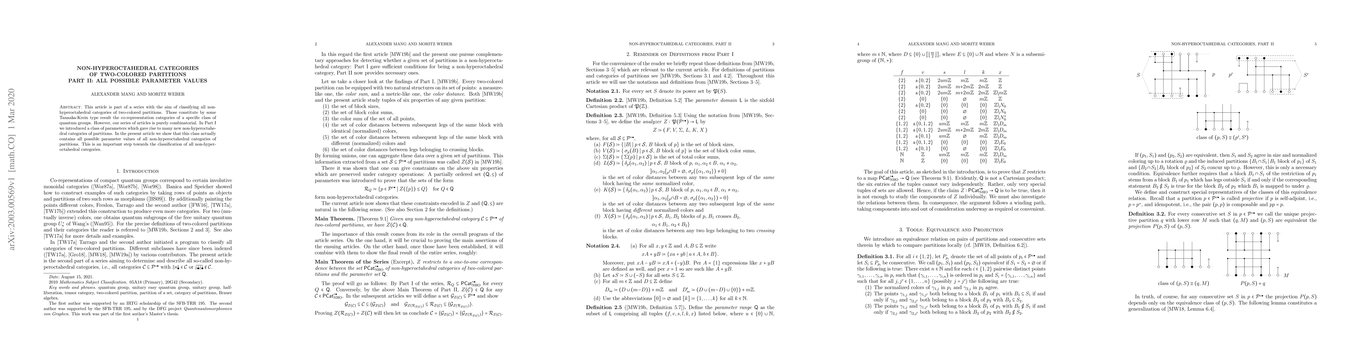 This article is part of a series with the aim of classifying all non-hyperoctahedral categories of two-colored partitions. Those constitute by some Tannaka-Krein type result the co-representation categories of a specific class of quantum groups. However, our series of articles is purely combinatorial. In Part I we introduced a class of parameters which gave rise to many new non-hyperoctahedral categories of partitions. In the present article we show that this class actually contains all possible parameter values of all non-hyperoctahedral categories of partitions. This is an important step towards the classification of all non-hyperoctahedral categories.