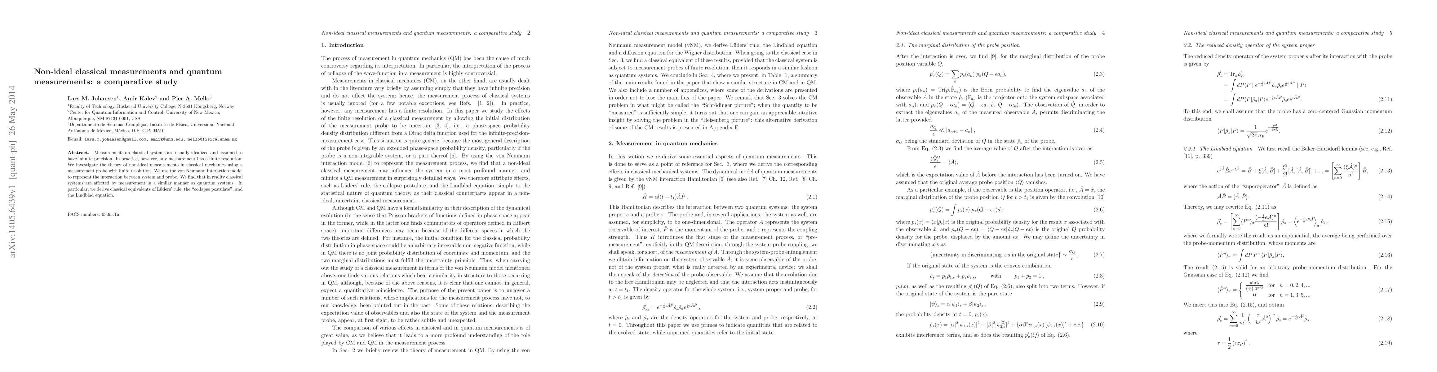 A study compares classical measurements with quantum measurements, finding that both systems are affected by measurement in similar ways, leading to classical equivalents of key quantum concepts like the collapse postulate and Lindblad equation.