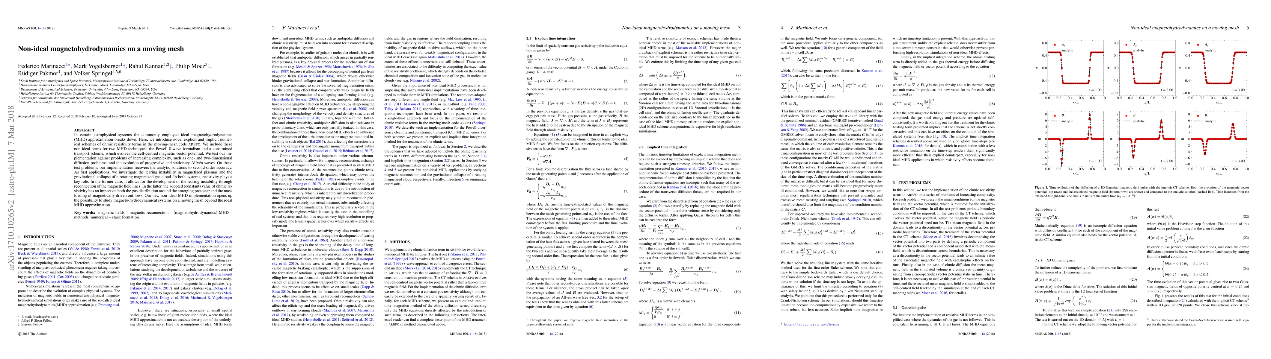 This paper introduces numerical schemes for non-ideal magnetohydrodynamics (MHD) in a moving mesh framework, specifically for ohmic resistivity terms in the AREPO code. It tests the implementation against complex problems and demonstrates its effectiveness in studying phenomena like tearing instabilities and gravitational collapse of magnetized gas clouds.